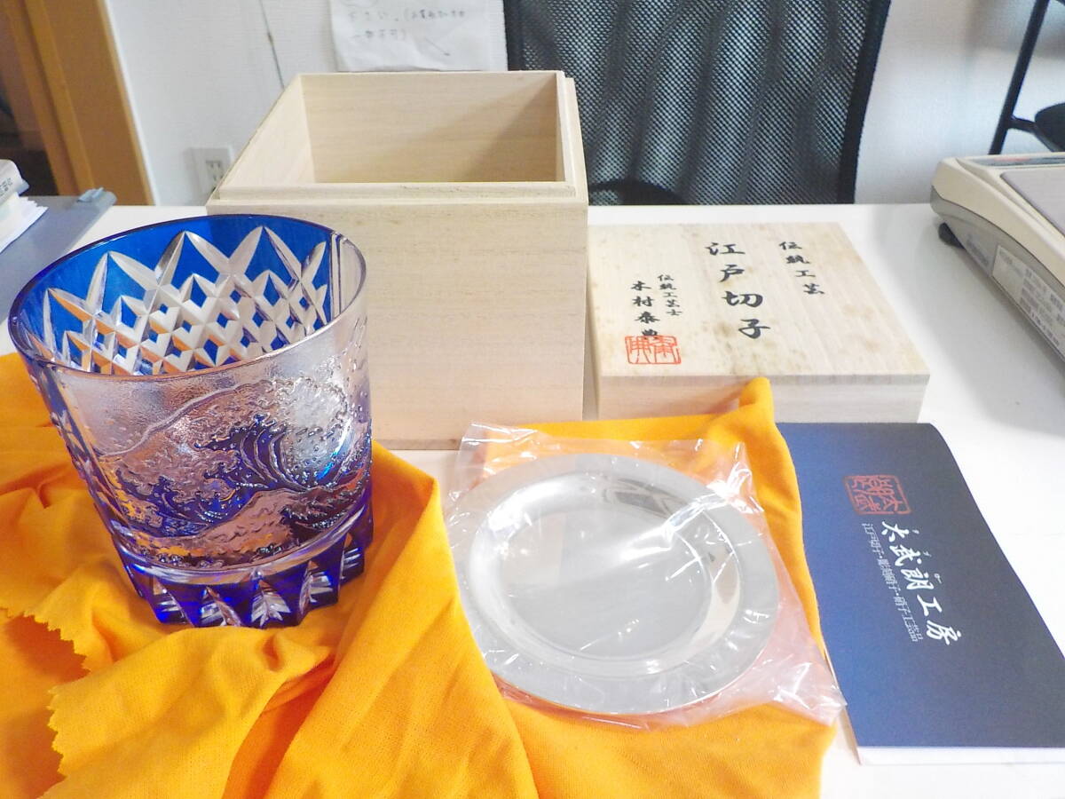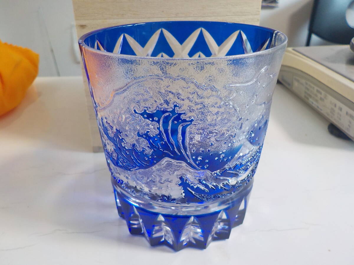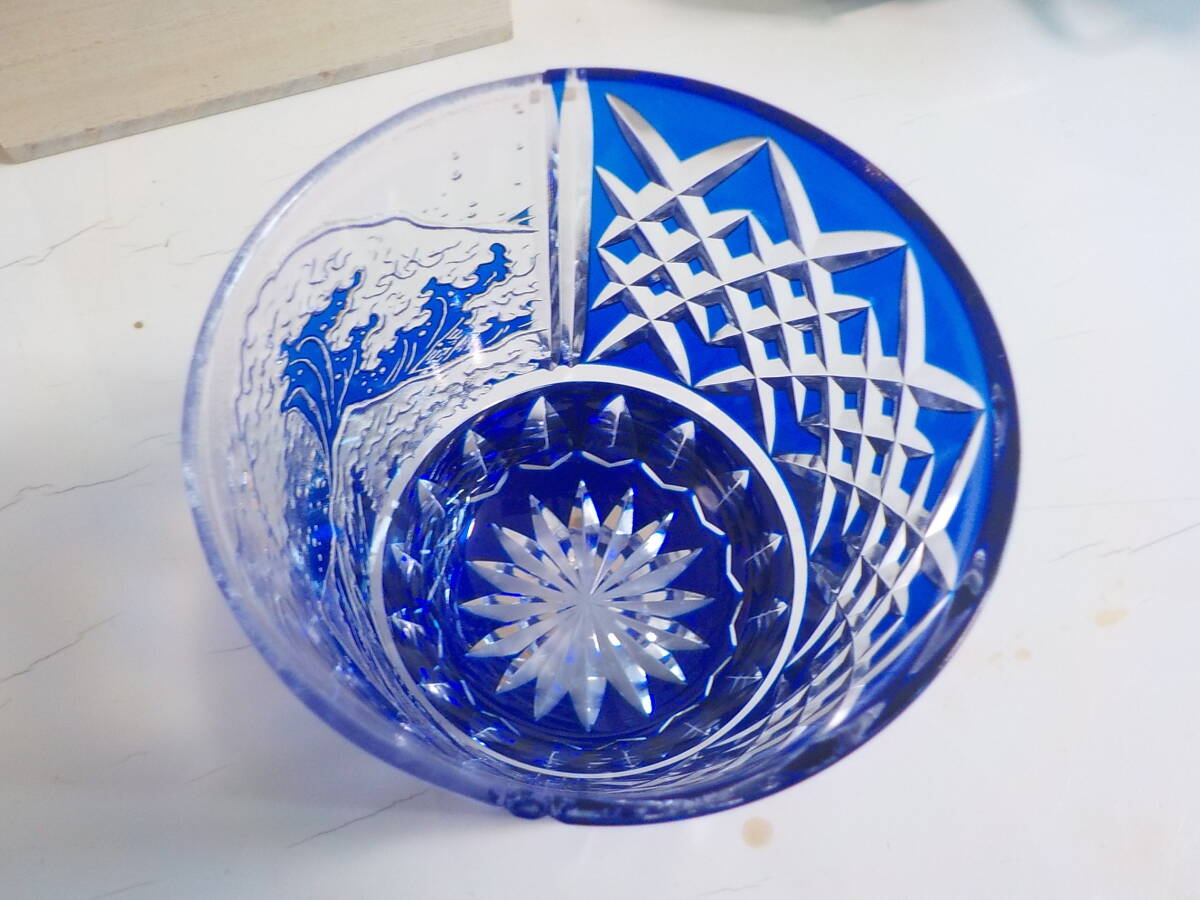 江戸切子 木村泰典 青 未使用品 グラス 売り切り