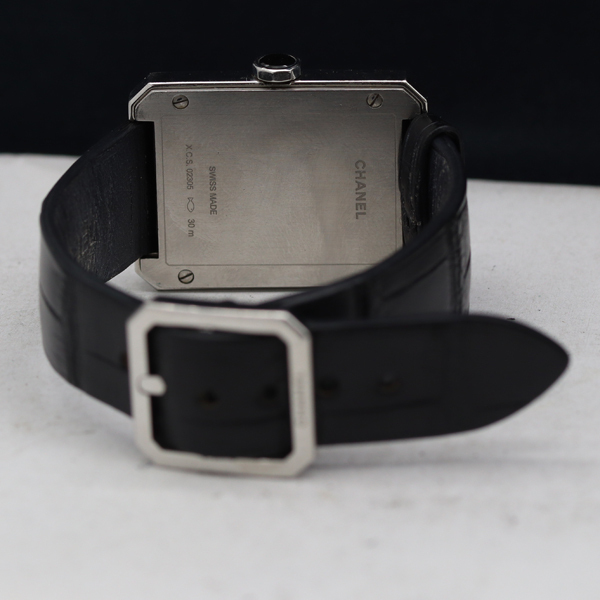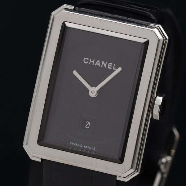 1円 稼働 シャネル ボーイフレンド X.C.S.02305 QZ ブラック文字盤 メンズ腕時計 0599610 9KHT MST