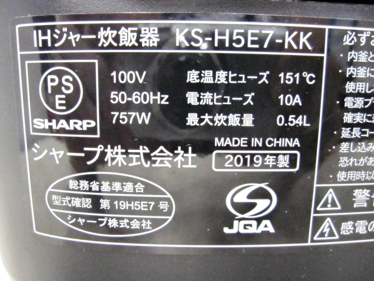| | SHARP IH ジャー炊飯器 KS-H5E7-KK 動作良好 3合炊き 炊飯器 白米 調理家電 キッチン家電 2019年製 シャープ 訳あり | |