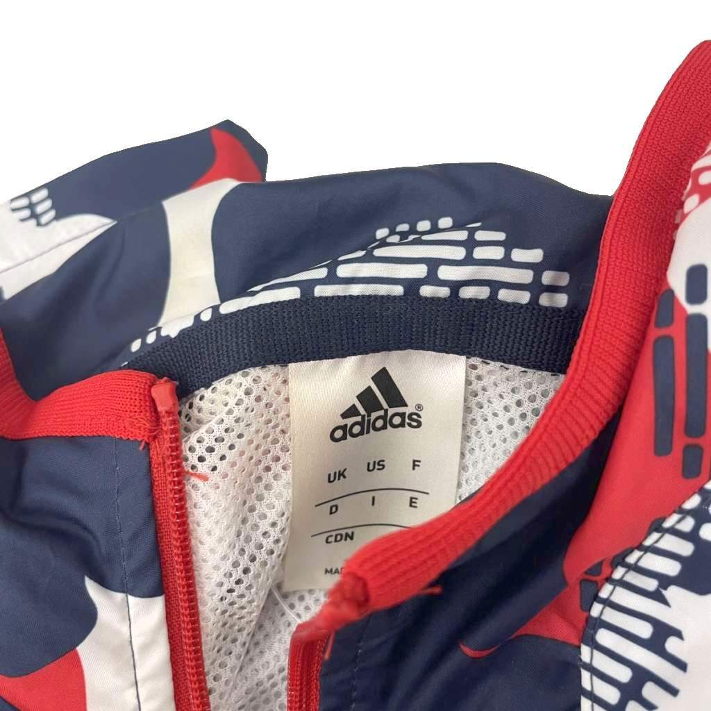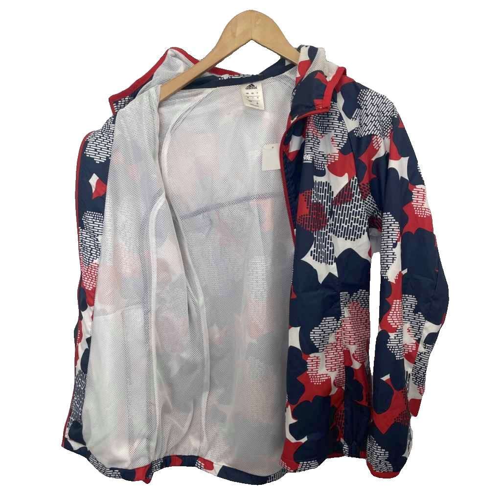 アディダス adidas ブルゾン フード ジップアップ 総柄 M 赤 レッド 紺 ネイビー F45448 ■YHS3 メンズ