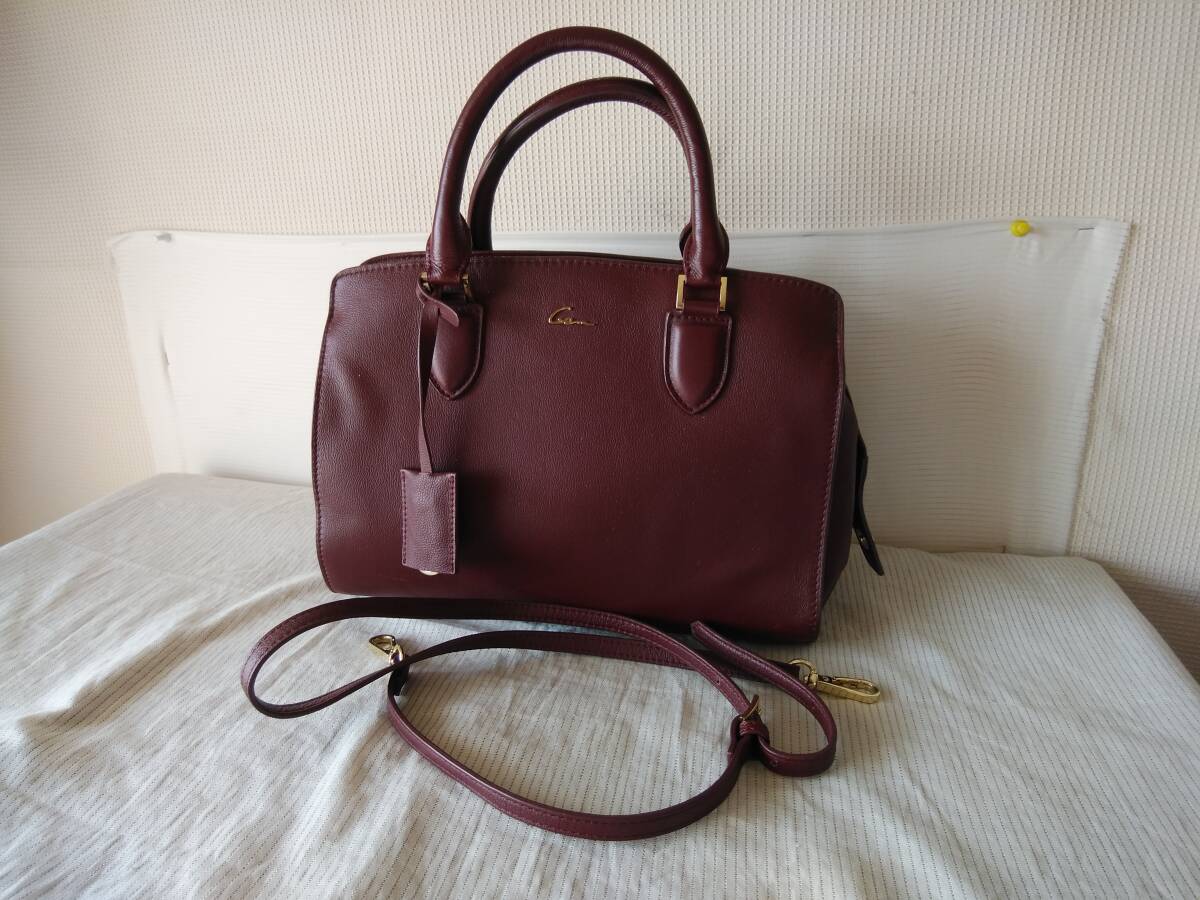★ほぼ美品★6M3074F★ハンド&ショルダ-バッグ★えんじ系 SMIR NASLI 本革 綺麗です