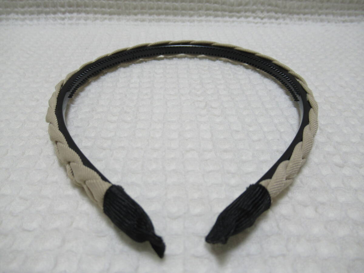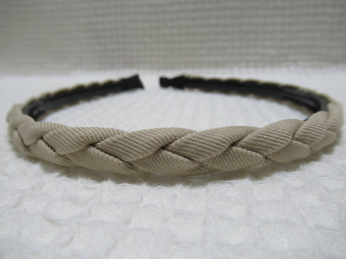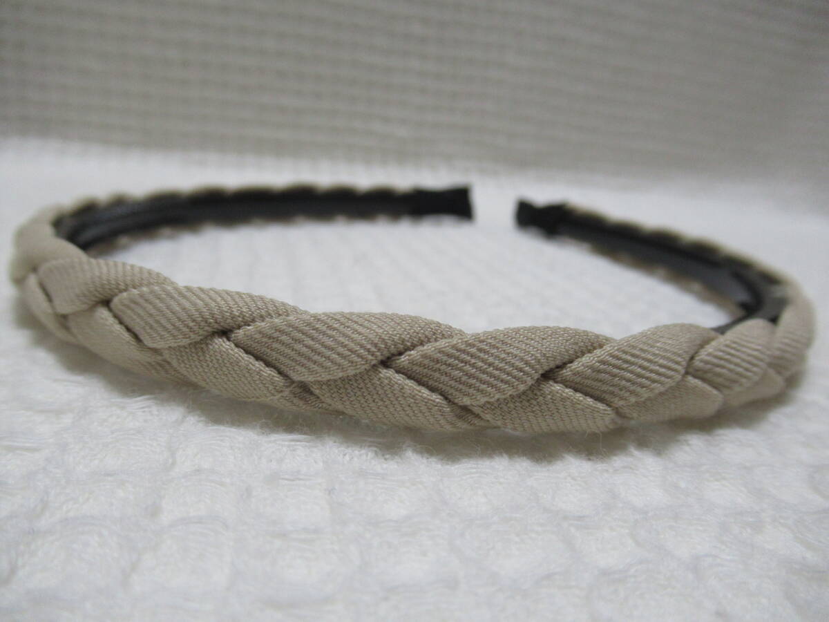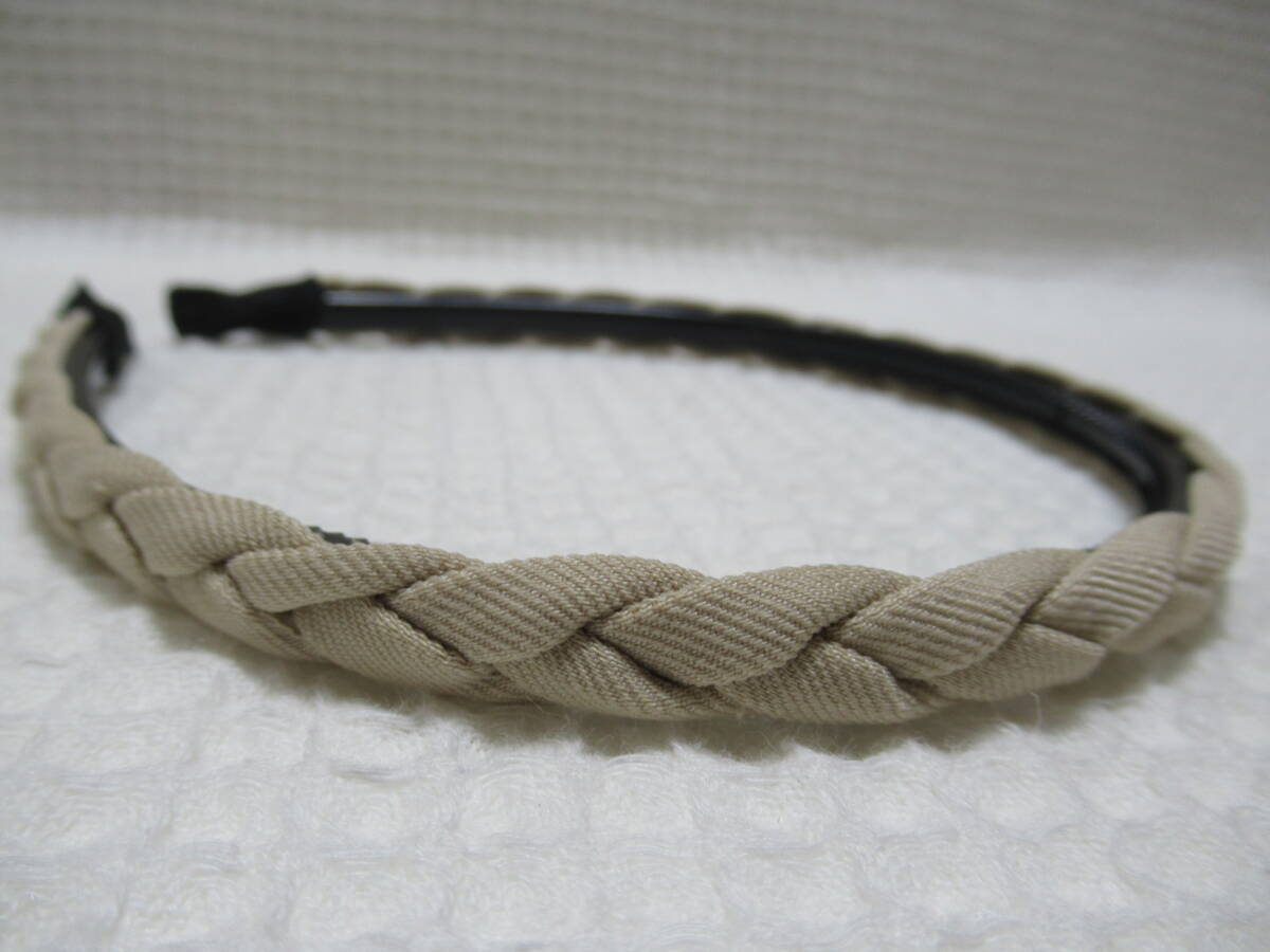 ライトベージュ系色生地のミツアミ型 細いカチューシャ