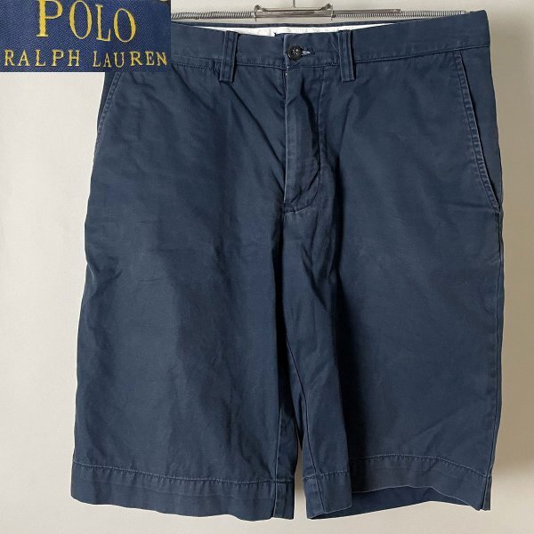 ★【名作 ポロチノ】POLO RALPH LAUREN SHORT ポロ ラルフローレン ポニー刺繍 ショーツ ノータック ハーフ チノ パンツ W28 ネイビー 短パン