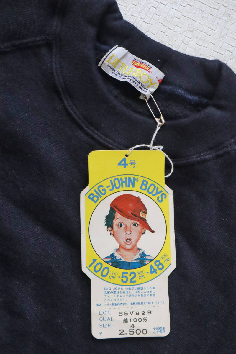 昭和レトロ トレーナー 100㎝ BigJohnのお品物。 右裾のロゴのみの、シンプルなトレーナー。 丸襟。 裏は起毛していません。 ラベルもきれいな状態です。(画像参照) 「100cm」の表示です。 下記の実寸をご参考下さい。 ◆色 :濃紺‥黒に近い濃紺です。 ◆素材:綿100 ◆サイズ:バスト60 着丈35 裄丈44(身頃中心から袖口まで) ◆メーカー希望小売価格(税抜き):@2500 ◆ストレッチ:あり5-●-3-2-1なし ◆厚さ :厚い5-●-3-2-1薄い ◆備考:デッドストックです。 落札の際は、上記の旨、ご了承下さい。 | |||