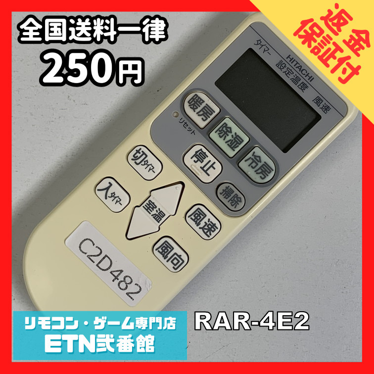 C2D482 【送料250円】エアコン リモコン / 日立 ヒタチ HITACHI RAR-4E2 冷房 暖房 動作確認済み★即発送★