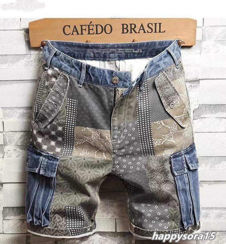 ショートパンツ メンズ デニムパンツ ハーフパンツ  ジーンズ ショーツ  チノパン 短パン薄手 夏服 ブルー W34