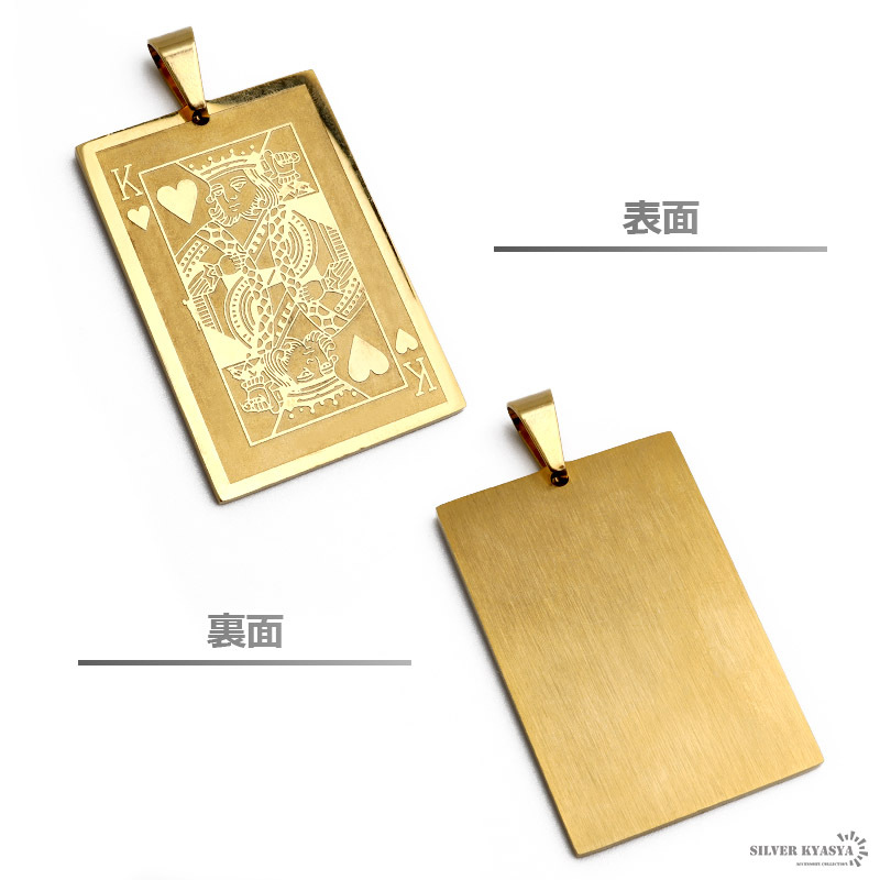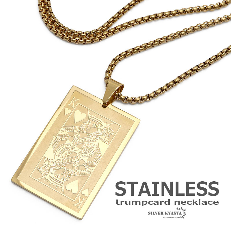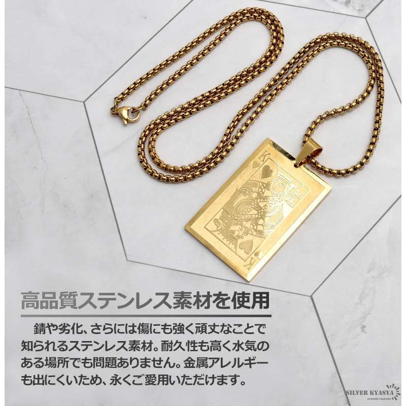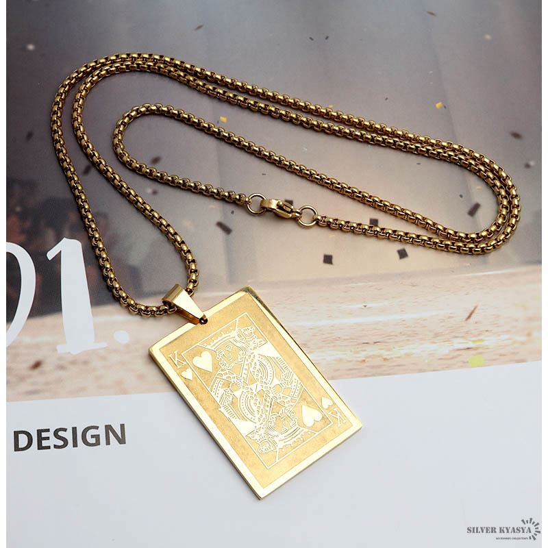 ステンレス トランプカードネックレス キング ハート ボックスチェーン 60cm ゴールド 金属アレルギー
