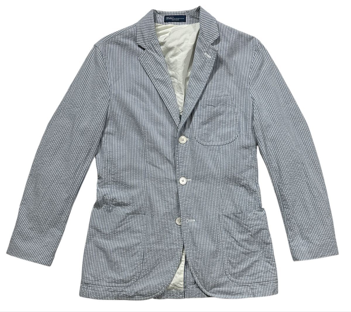 ストライプ柄 3釦 ブレザー ジャケットになり使い勝手もよく大変お洒落です
