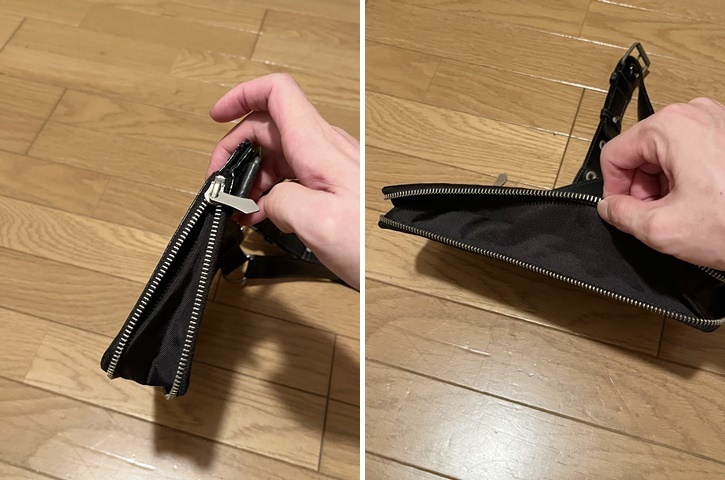 本体の周りにファスナーがついていて、幅を広げることが出来ます。