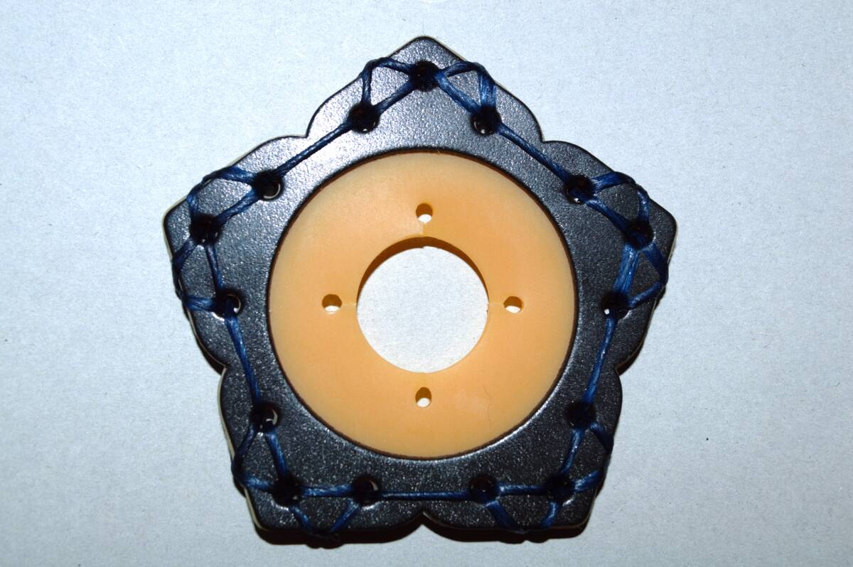| 商品説明 | ・桔梗の形をした鍔止めです。 ・構造上の特許を取得した製品になります。(特許第6099218号) ・構造は、樹脂の板でゴムを挟み、ナイロン糸で縛っただけの 造りで接着剤を使用していません。 糸を切れば簡単に分解する ことが可能で、ゴムの交換ができ、リサイクル可能な製品です。 ・商品の大きさは、幅65㎜ 厚さ5㎜です。 ・ゴムは厚さは2mmと厚く、輪ゴムと同じアメゴムを使用して いますので伸びがよく、破れにくいゴムを使用しています。 ・ゴムの中心の穴は18㎜。そこから四方に切れ込みが入っており、先端に3㎜の穴をあけてあります。この切れ込みによって ゴムへの摩擦が軽減され、ゴムがより長持ちします。 ・樹脂本体の穴は40㎜で極太、八角の柄でも対応ができる造りになっています。 ・10個以上の御購入希望の方や業販を御希望の方は『出品者への質問』から御相談下さい。 ・郵送ですので到着には4日程度かかりポストに投函される形になります。 ・昇段のプレゼントやお返し、部活で統一したり大会の景品に 御購入頂いております!! |