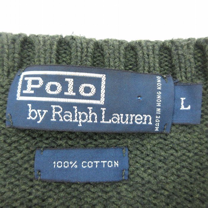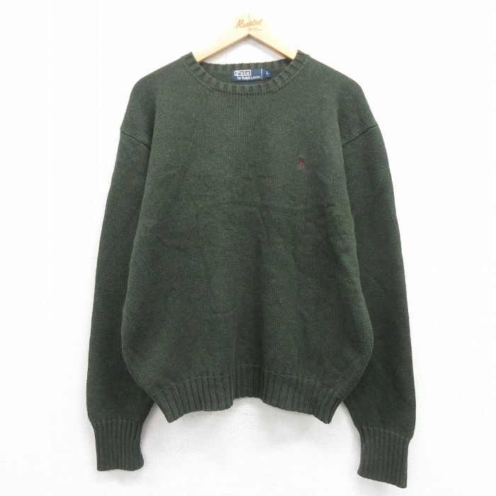 【商品名】 L★古着 ラルフローレン 長袖 ブランド セーター メンズ 90年代 90s ワンポイントロゴ コットン クルーネック 緑【spe】