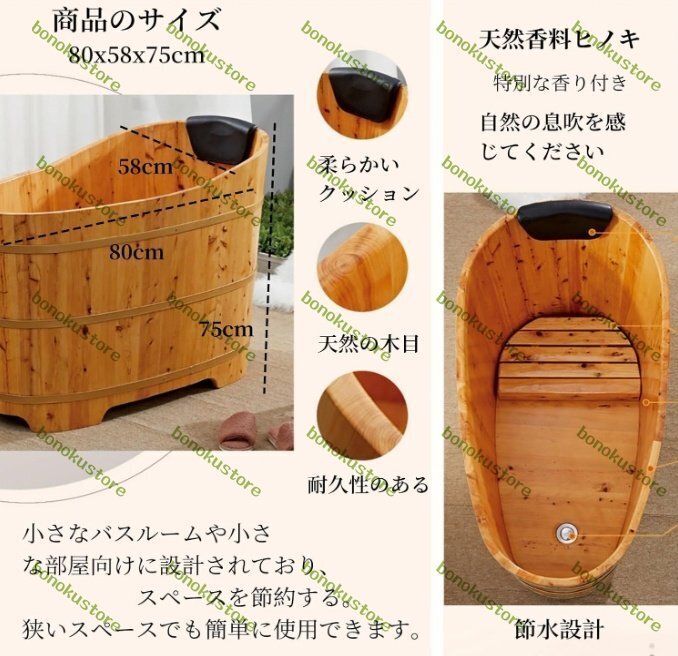 この商品について1木製の浴槽 - 伝統とモダンの融合 伝統的な木製の浴槽がモダンなデザインと機能性で進化しました。木製の浴槽は、日本の伝統と温もりを提供し、バスルームに自然な美しさを加えます。さらに、木製浴槽の特長として、木製の浴缸盖板と強化横梁を備え。2木製の