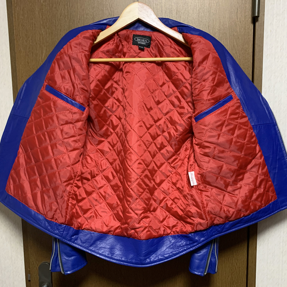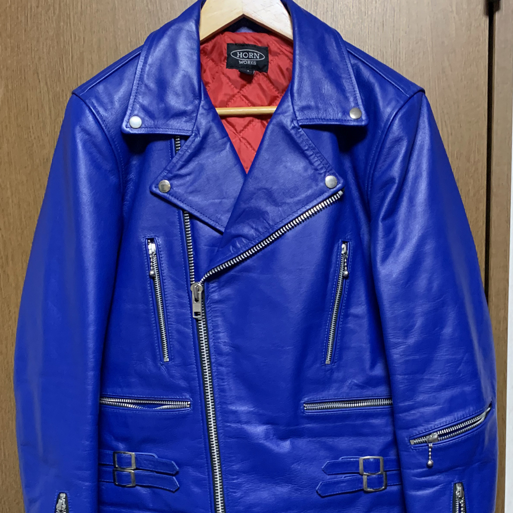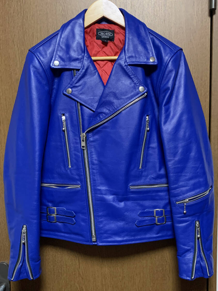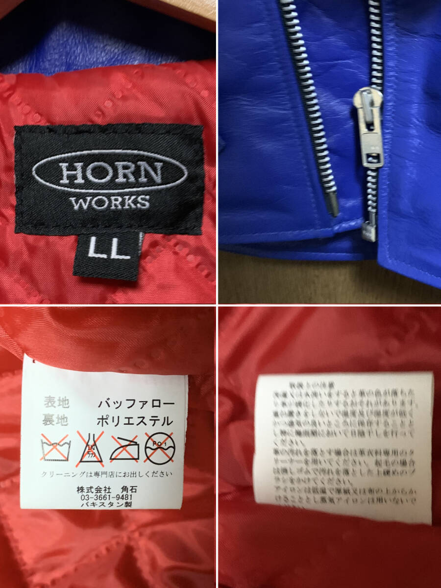 LL【HORN WORKS|ダブルライダース】ホーンワークス ブルー 水牛 バイカー バッファロー パンク ロック 本革