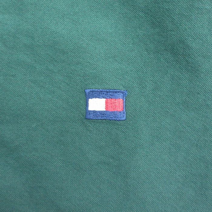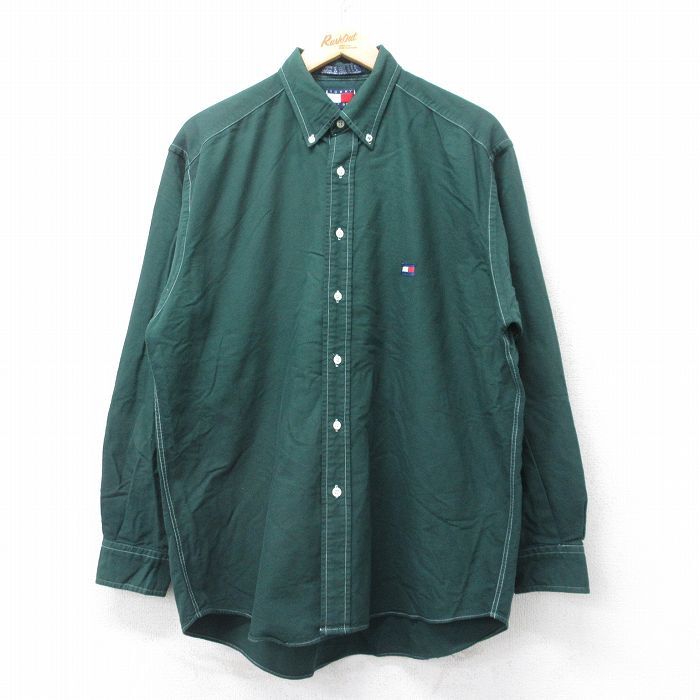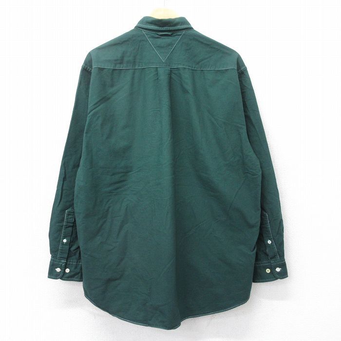 【商品名】 XL★古着 トミーヒルフィガー 長袖 ブランド シャツ メンズ 90年代 90s ワンポイントロゴ コットン ボタンダウン 緑