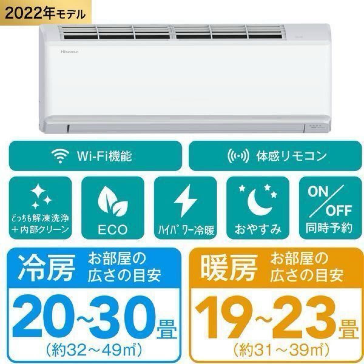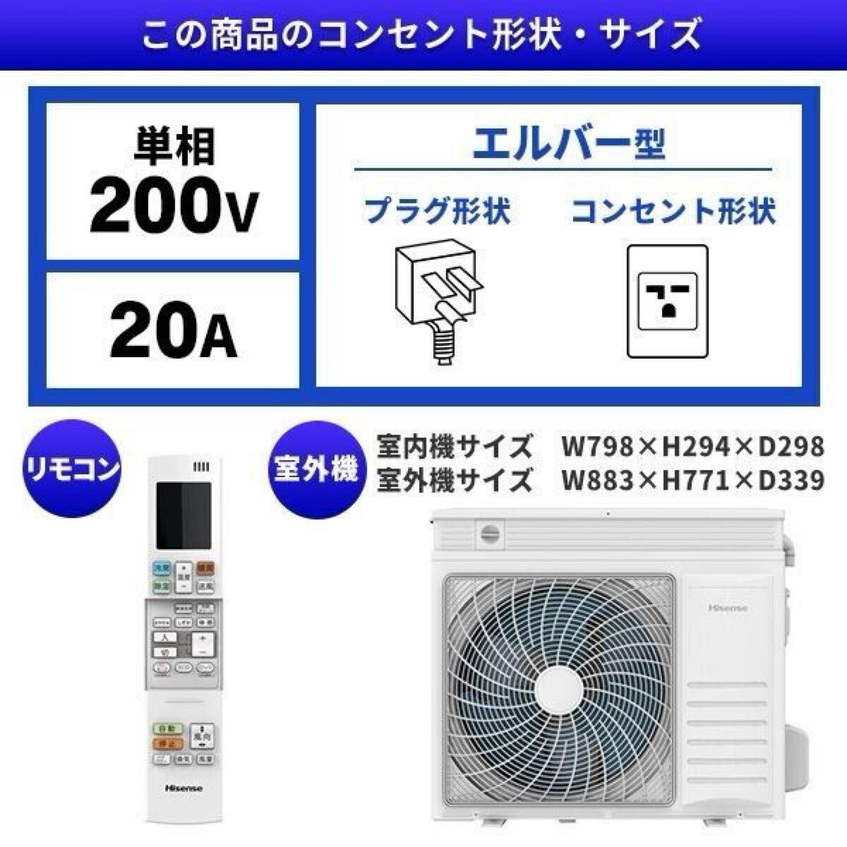 | アウトレット品Hisense HA-G71E2E1-W エアコン 23畳用・単相200V換気、WiFi機能付 | |