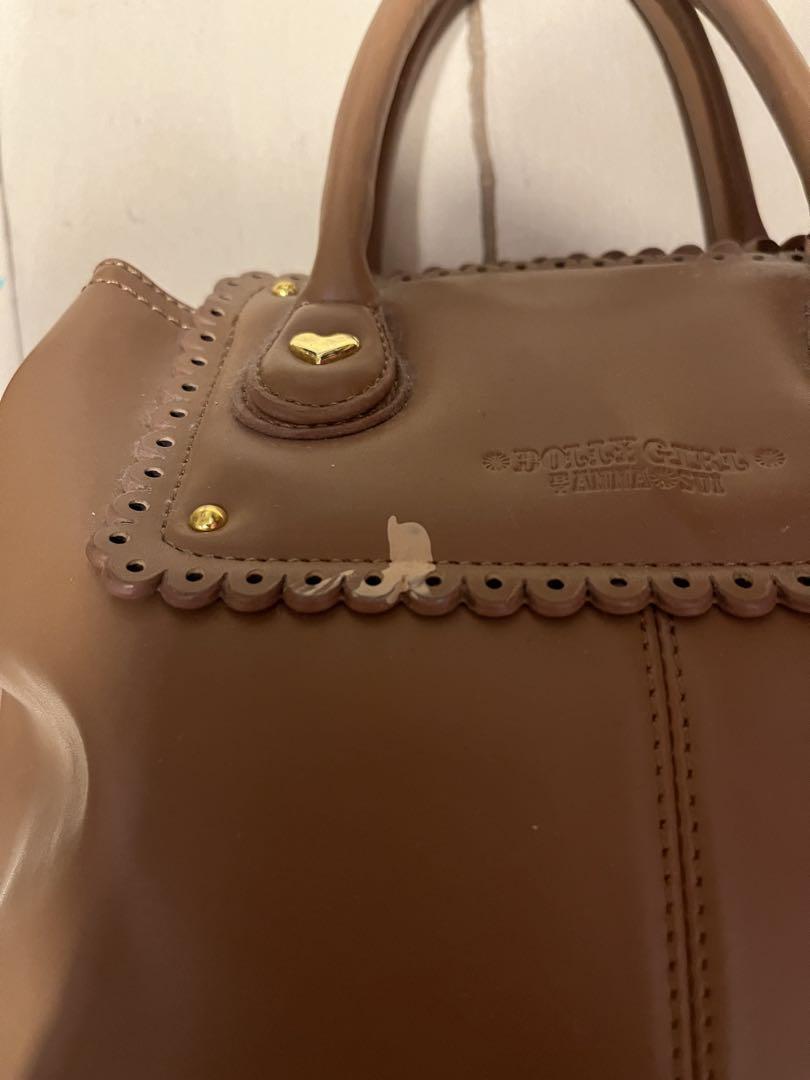 ミニボストンとしても 付属の肩ベルトを付けてショルダーとしても使えます。 一ヶ所だけ加工が剥がれてしまっています(写真の通り) 横27cm、縦22cm、マチ14cm