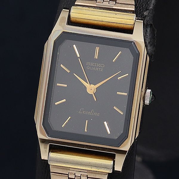 稼働 良品 QZ セイコー エクセリーヌ 1221-5020 スクエア 黒文字盤 レディース腕時計 OKZ 2550000