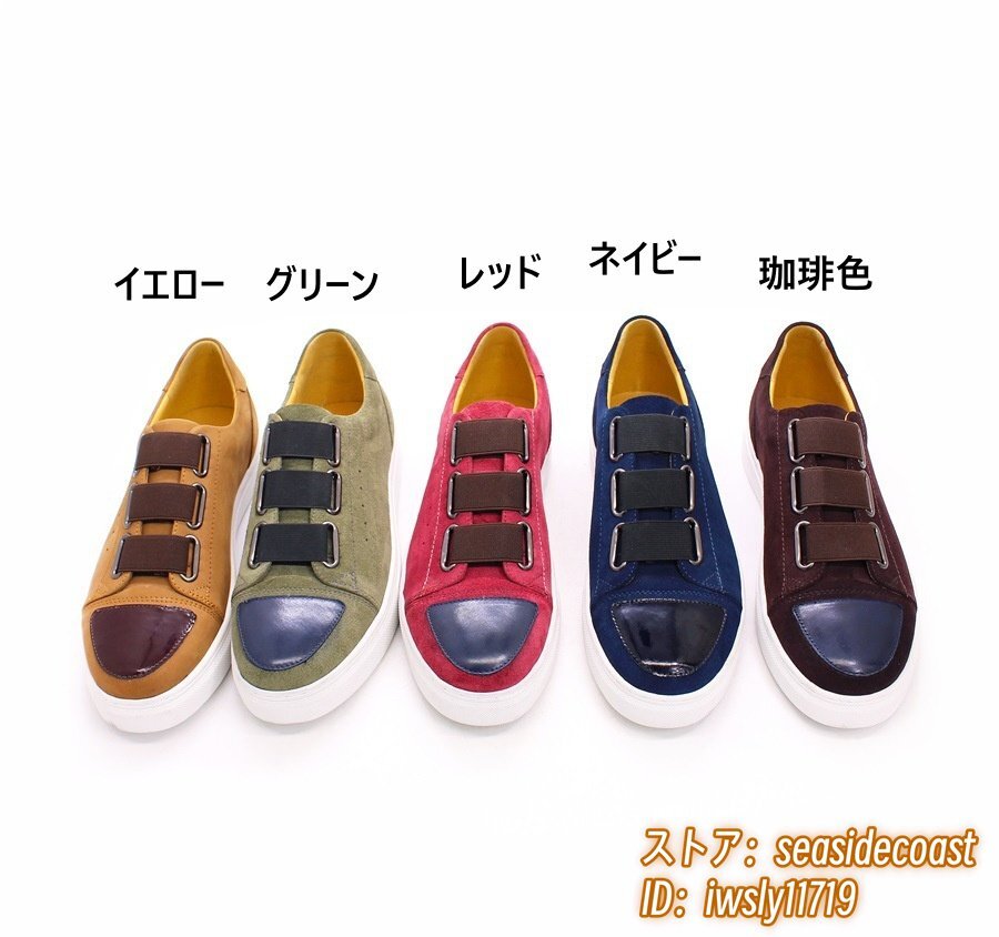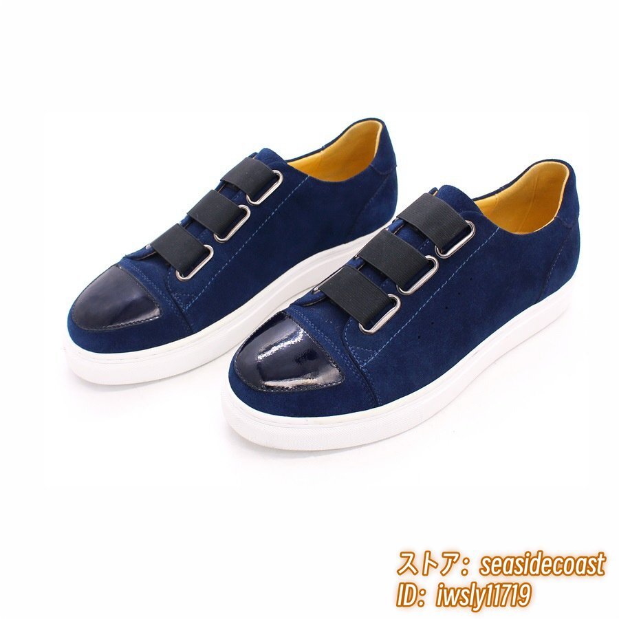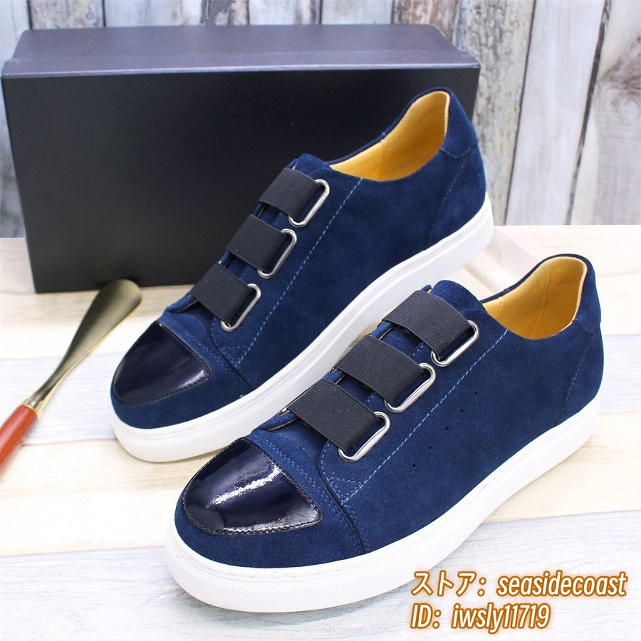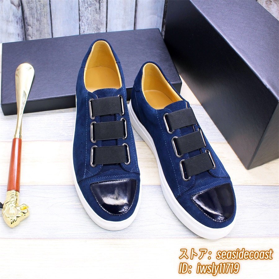 定価5万超◆最高級 スニーカー メンズ 職人手作り 本革 レザーシューズ スエード 紳士靴 革靴 快適 ローファー スリッポン ネイビー 26.5cm