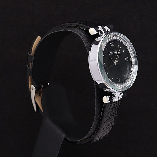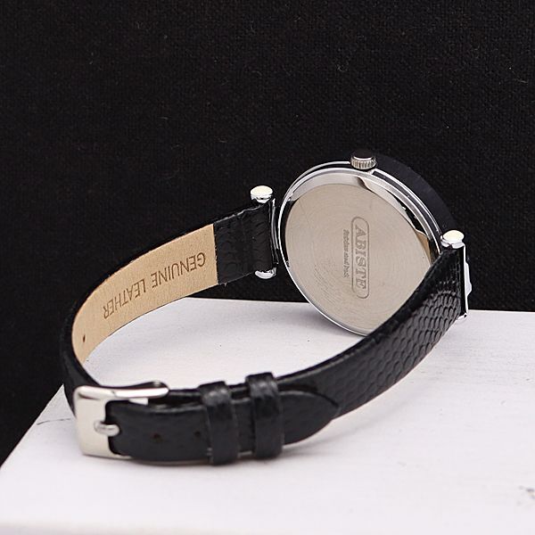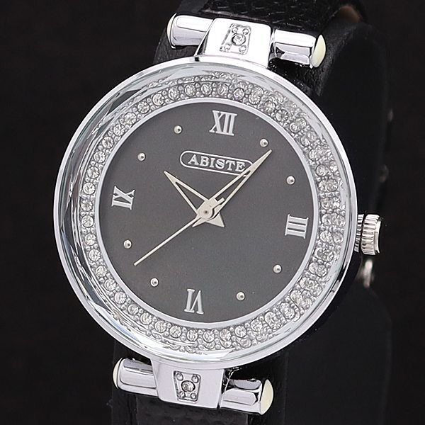 稼働 美品 アビステ QZ 石付 ブラックシェル文字盤 ローマン ラウンド レディース腕時計 KNK