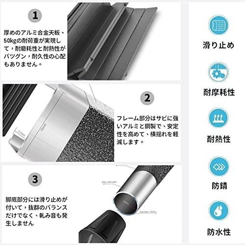 高品質な材質 大理石肌理の焼付塗装仕上げのアルミ合金天板、スチール製の骨組み、贅沢な質感に見え、片付けも楽です。防水機能も備えており、錆び付いたりすりきずつけたりしにくいです。アップグレードされた三角形フレーム、また滑り止めマットがある、安定性を高めいます。