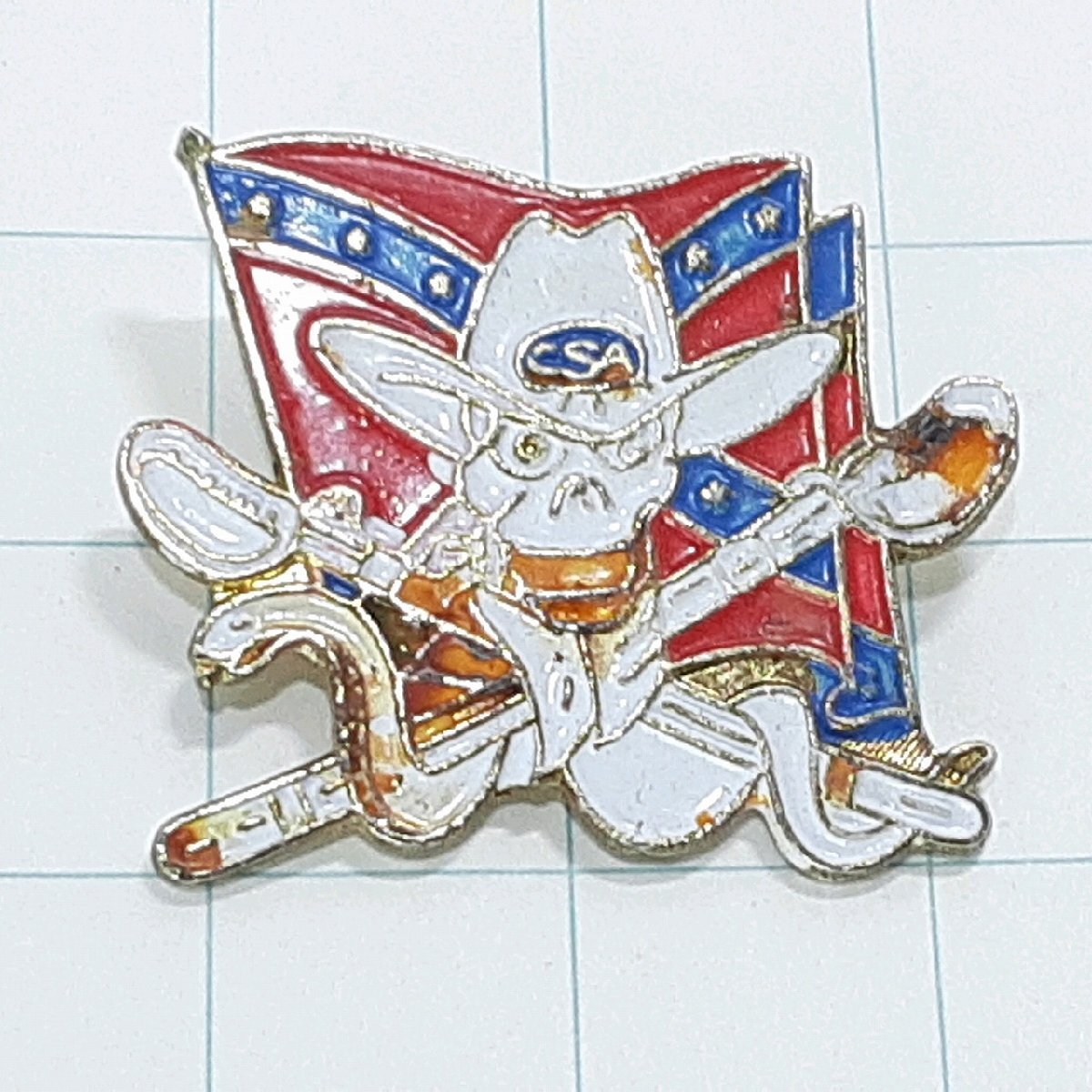 送料無料)アメリカ 南軍旗 カウボーイハット 輸入 ピンバッジ ピンズ PINS A32083