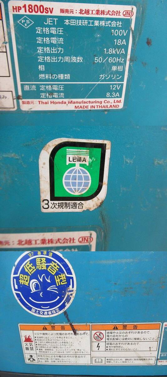 【店頭引取り限定】 ◇中古品◇USED◇ 北越工業 AIRMAN エアーマン 小型ガソリンエンジン発電機 モデル:HP1800SV 製品の詳細はメーカ―HPにてご確認下さい 管理番号:7714/S5M1 【買取品・中古品・簡易動作確認済み】 【型番】 北越工業 ガソリンエンジン発電機 AIRMAN モデル:HP1800SV サイズ:全長509×幅約290×高約5425(mm) 乾燥質量:21.2㎏ 騒音指定:超 ※メーカーHPの通り ※取扱説明書や他の付属品はございません。 画像の物がすべてです。 【店頭引取り限定】です。 店頭引き取り出来ない方がご落札した 場合は、落札者様都合でのキャンセルと させていただきますので、ご留意下さい。 店舗買取品・中古品、簡易動作確認済みです。 電源のオン/オフ、電動工具の充電器に接続して、充電確認を行っております。 全体的に使用感があり、擦り傷・傷・汚れの付着・埃塵の付着や貼付物の剥がれ・プリントの薄れ等使用に伴う外観ダメージがございます。 現在ガソリンが入っております。 どのくらいの残量が残っているかは不明です。 発送出来ませんので、店頭引取り限定とさせていただきます。 ※写真に写りきらない小傷や汚れ等ある場合がございます。 予めご了承ください。 状態の詳細につきましては 写真よりご確認下さい。 ※商品の詳細・スペック等は各自お調べ下さい。 ご入札前に必ず全文をお読みになり、 お客様が十分にご納得された上でのご入札、 ノークレーム・ノーリターンでお願い致します。 入札の取消は行っておりませんのでご注意下さい。 (ご入札された時点で同意頂いたものとします) ※画像のものがすべてになります。 ※店舗保管品の為、多少のスレキズ等ある場合が御座います。 ※専門知識が無いため質問にお答えできない場合が御座います。 ※素人検品・撮影の為写真に写り切らない汚れ・キズがある場合が御座います。 ※新品の様な100%完璧な状態では御座いません。 ※念入りに検品しておりますが見落としがある場合が御座います。 ※神経質な方、完璧をお求めの方は入札をお控え下さい。 ※御理解頂ける方のご入札をお願い致します。 ※当店はまとめてお取引には対応致しません。 全て単品でのお取引となります。 ※同梱は行っておりません。 ※商品管理上、取り置きは致しませんのでご了承下さい。 | |||
