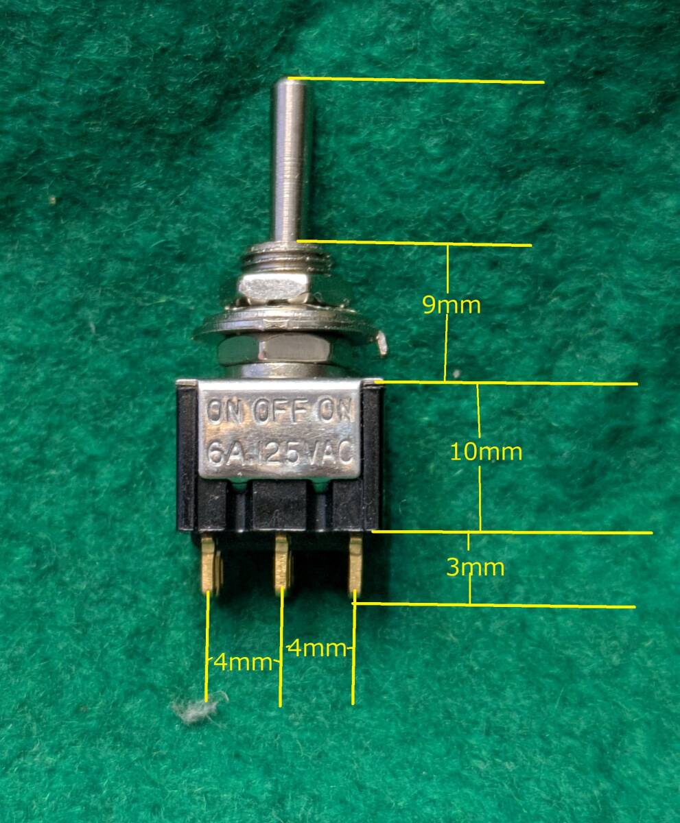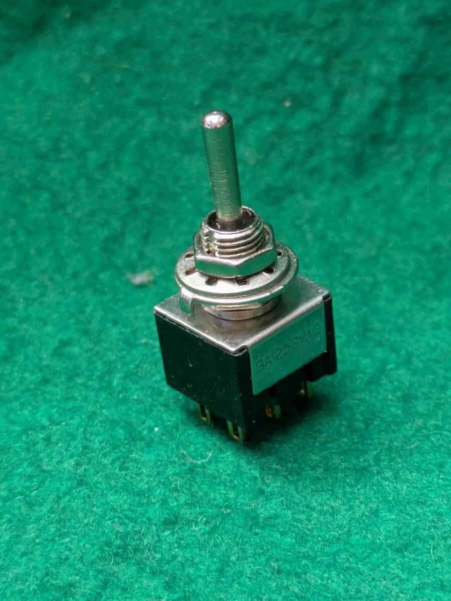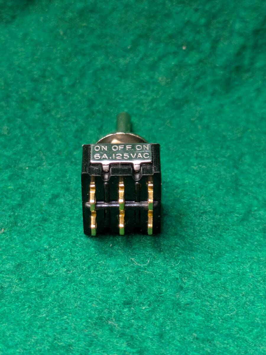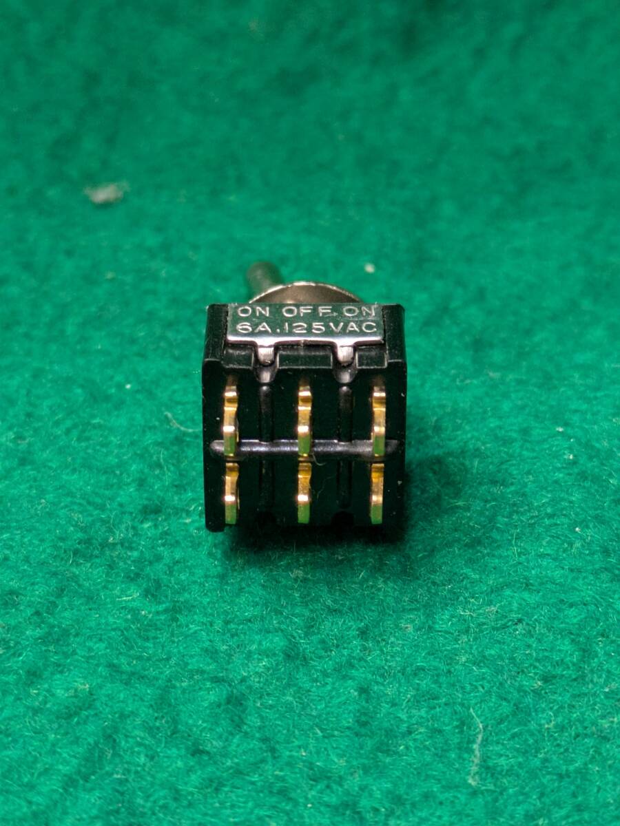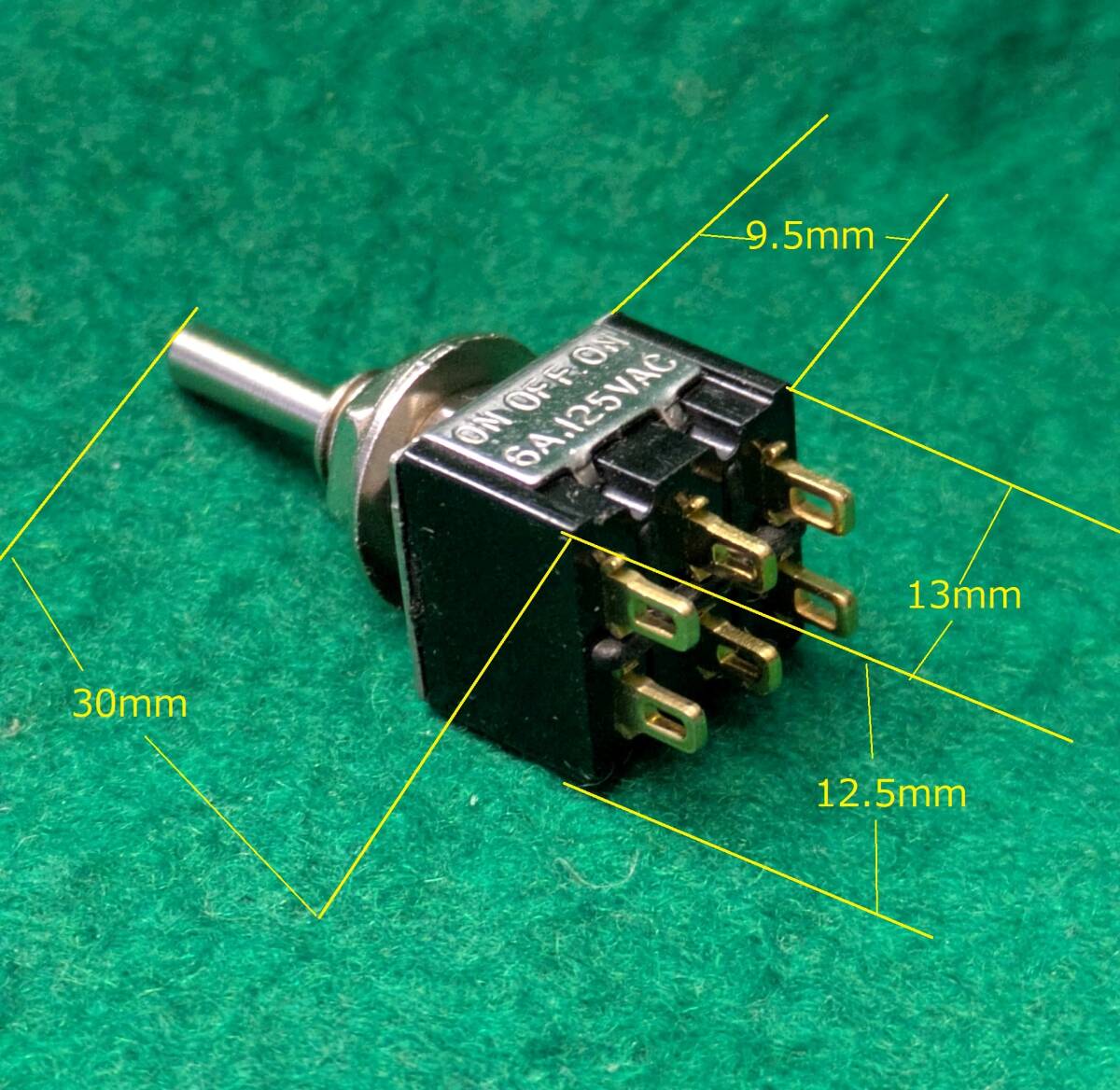中点OFF トグルスイッチ ON-OFF-ON 6P1回路規格6A125VACレバーは中点で止まります表示ONOFFON全国一律ゆうメール180円。