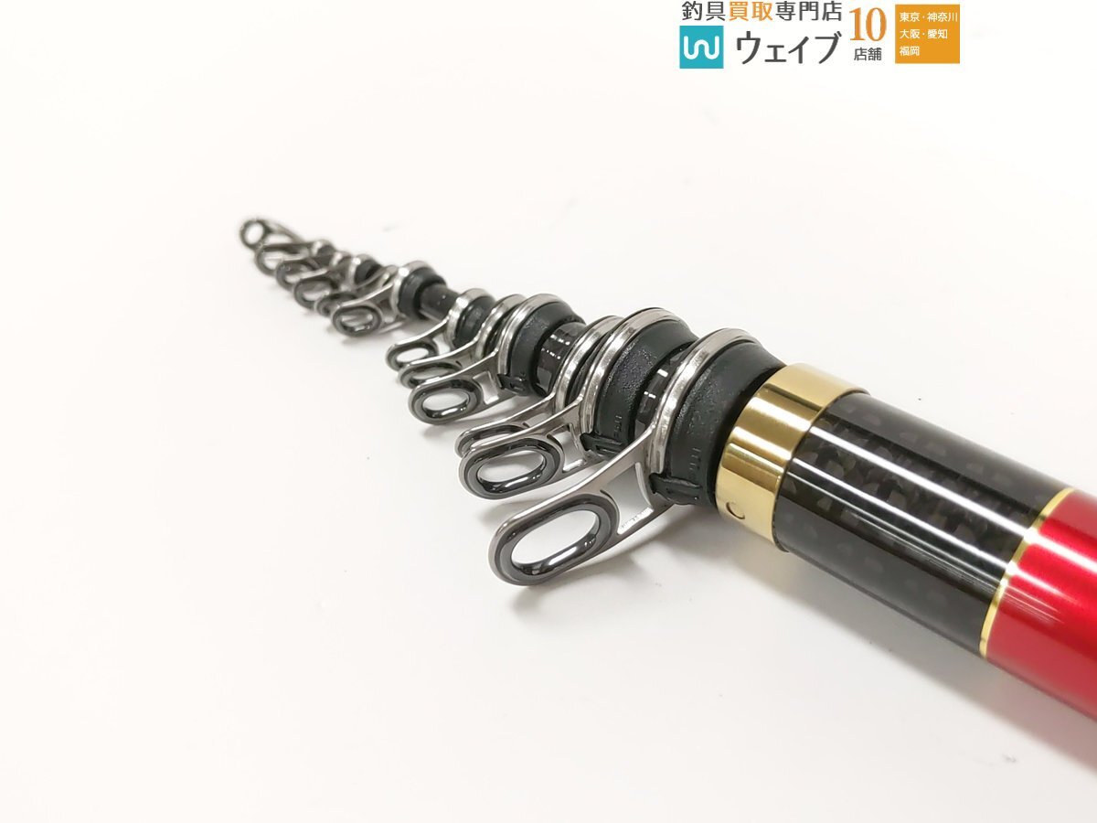 | 説明 | 全長:529cm(実測) 自重:268g(メーカー表記) ガイド数:12個 トップガイドの付け根に僅かに隙間がありますが、 穂詰めの形跡は感じられません。 グリップ周りに多少のスレ感と、 グリップエンドに僅かに置き傷ある程度で、 特に気になる様な傷の無い綺麗な商品になります。 保証書は付属しません。 ※付属品を含め写真に写っているものが全てとなります。状態に関してはランク表または写真を参考にしてください。 |