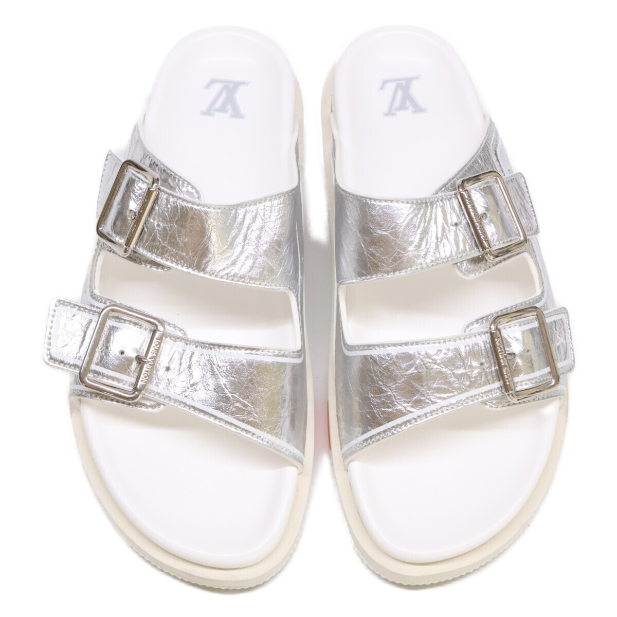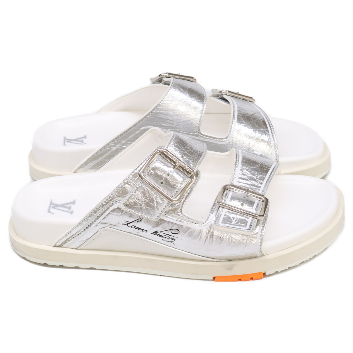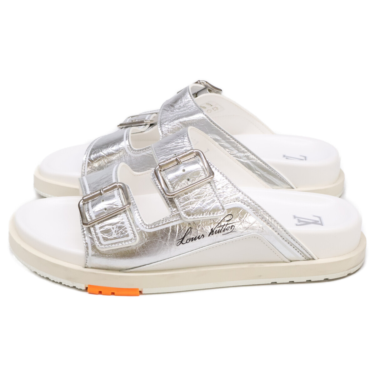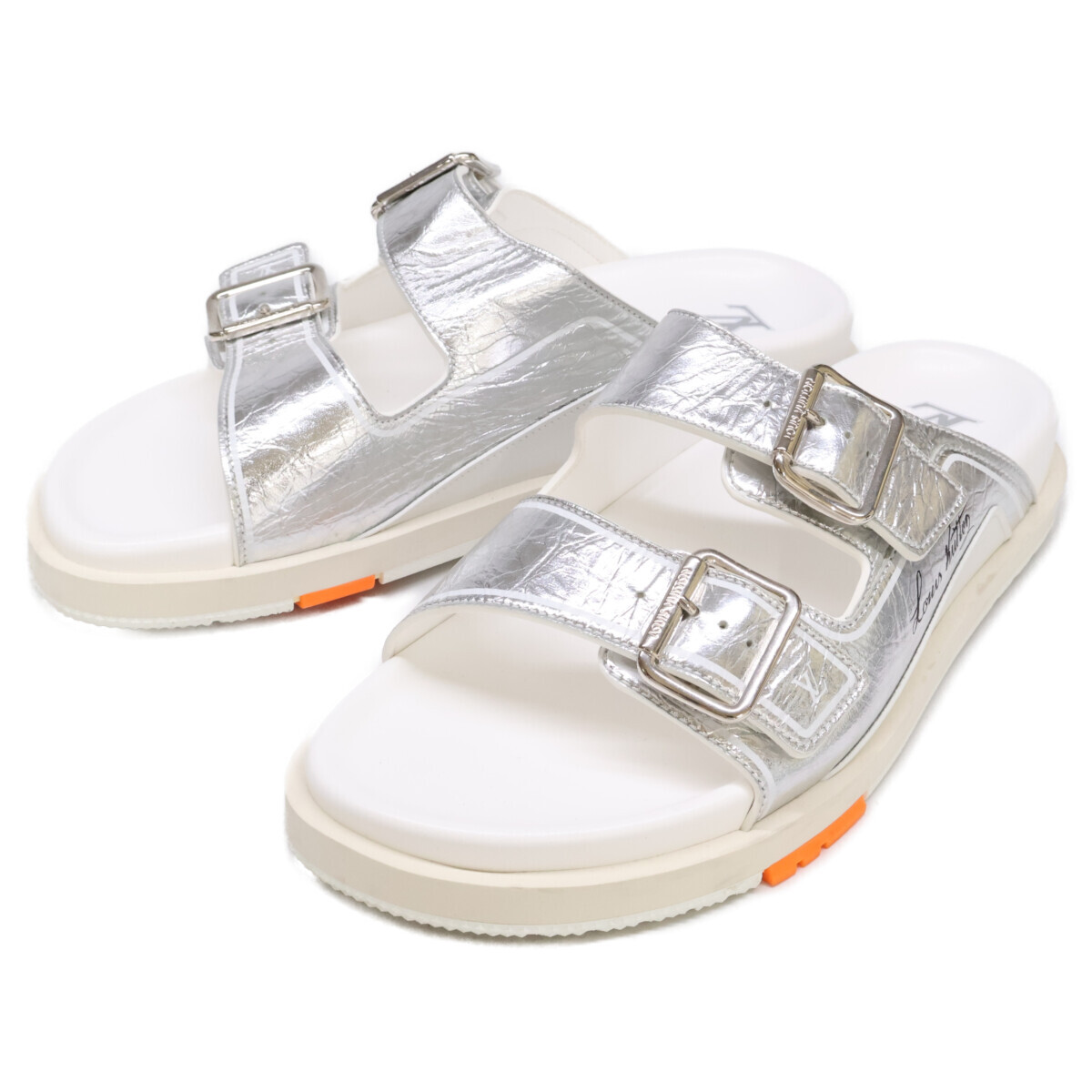 美品/ LOUIS VUITTON ルイヴィトン LVトレイナーライン レザーサンダル/ シューズ 7 シルバー/ホワイト メンズ