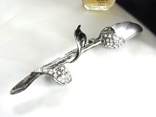ビンテージ/ヴィンテージ グレーパールトーンのストーン調 素材不明 ラインストーン輝くビジューのお花デザイン 存在感 ブローチ★