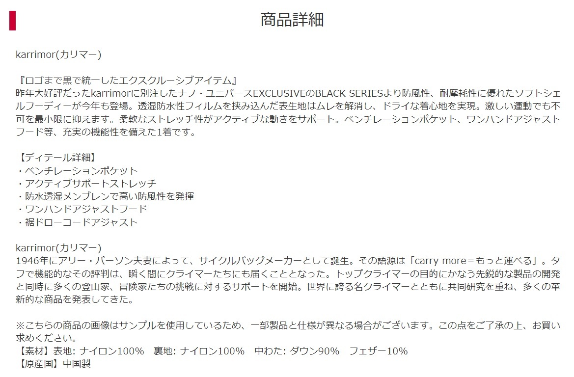 ◆ 美品 Mサイズ 定価36300円 カリマー KARRIMOR TRAIL DOWN PARKA ナノユニバース別注 オール ブラック ダウン パーカー ジャケット