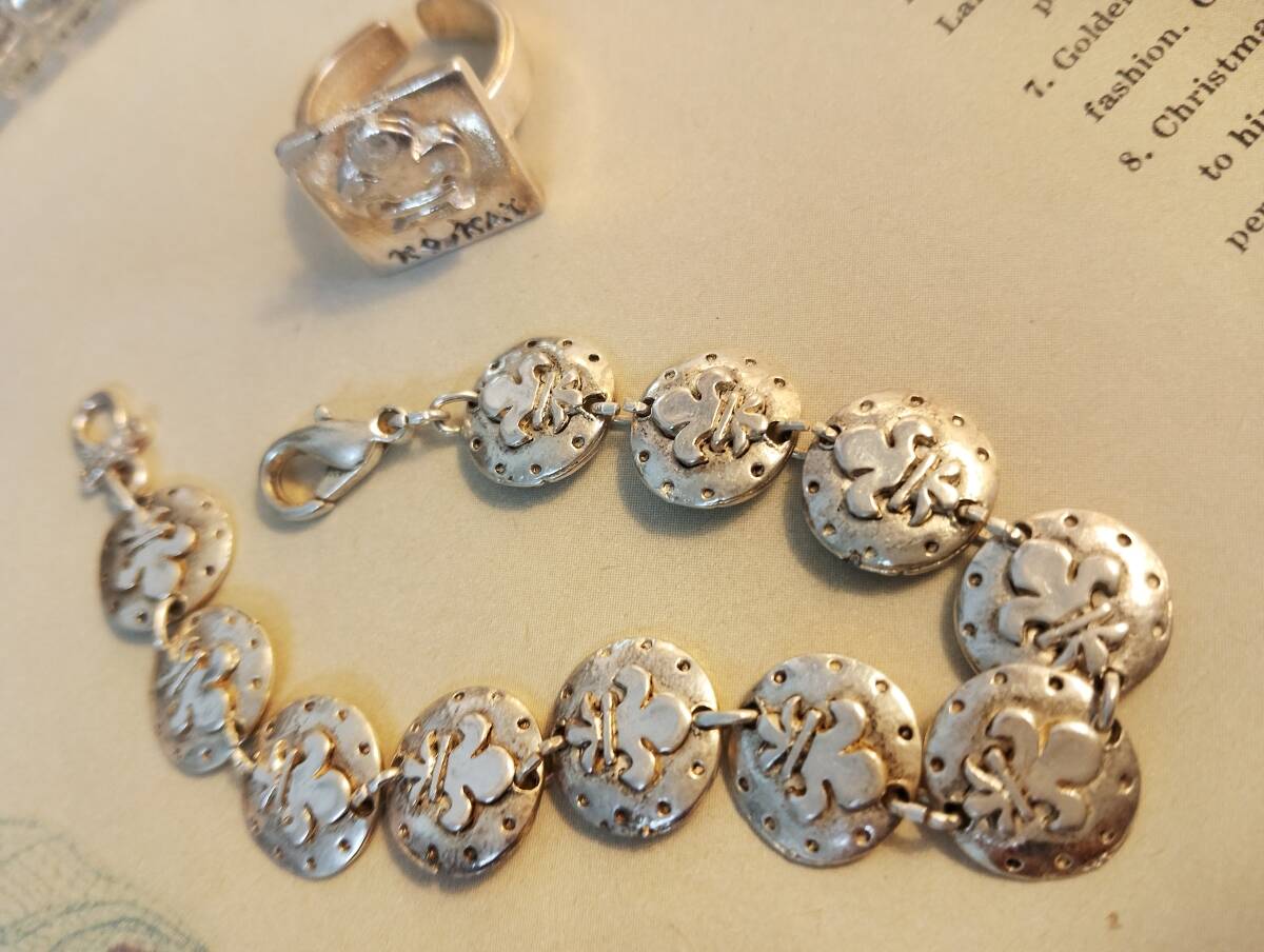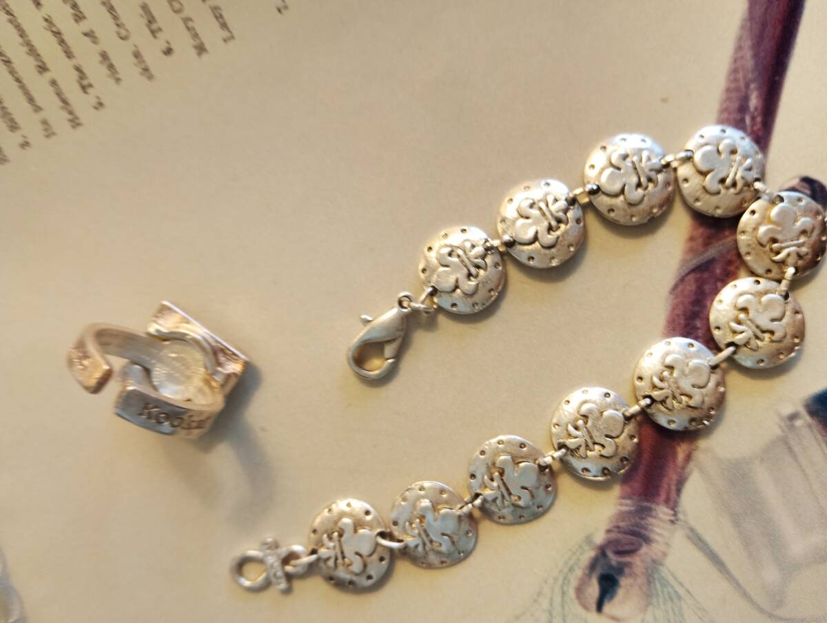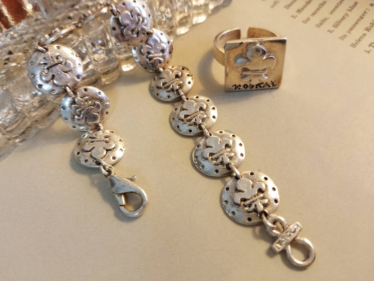 used品。Kookaiのブレスレッドとリングのセットです。リングには擦れが見られます。used品ご理解の上気に入っていただけましたらどうぞご入札ください。