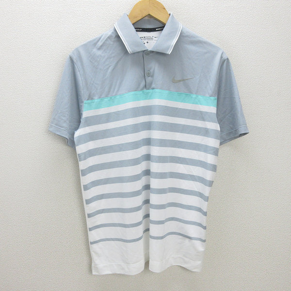 G■ナイキ/NIKE GOLF 半袖ポロシャツ/ゴルフウェア【L】薄青/men's/95【中古】■
