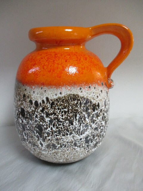 商品紹介 | オレンジ×茶×白のカラーで、溶岩のような質感と鮮烈な色彩が個性的です。 W.GERMANY(西ドイツ)時代のものでヴィンテージ(アンティーク)花瓶として重宝します。 Fat Lava 1950~70年代のドイツ(主に西ドイツ)で、盛んに作られていた。 芸術性に富んだ陶器の中で、主流となった厚ぼったい(fat)溶岩(lava)のような釉薬が施された手法をFat Lava(ファットラヴァ)と呼びます。 ヴィンテージ陶器として世界中のコレクターに人気で、日本でも人気が上昇しています。 刻印あり 品番484-30 W.GERMANY(西ドイツ) |