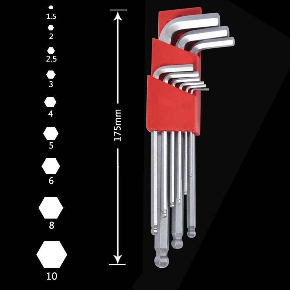 BESTU 六角棒レンチ セット ボールポイント L型レンチ 六角棒レンチセット1.5/2/2.5/3/4/5/6/8/10mm ロング 精密 レンチセット 9本組 □商品詳細【対応サイズ】:1.5mm・2mm・2.5mm・3mm・4mm・5mm・6mm・8mm・10mm 【材質】:ニッケルクロームモリブデン+バナジウム鋼。