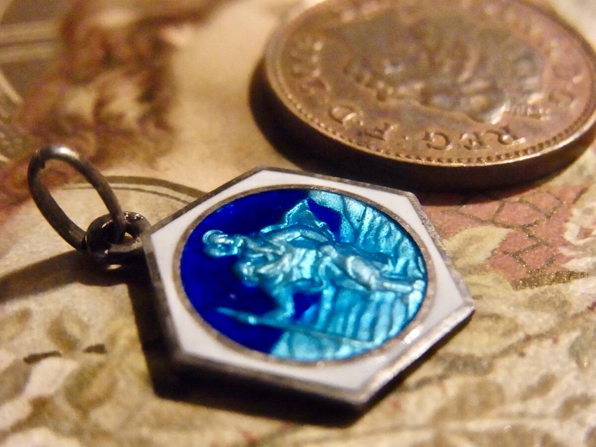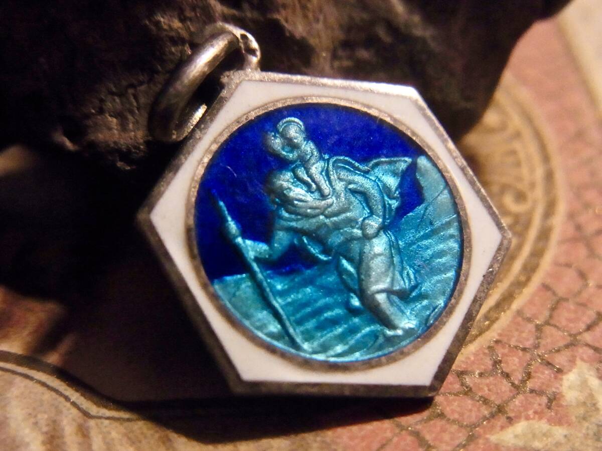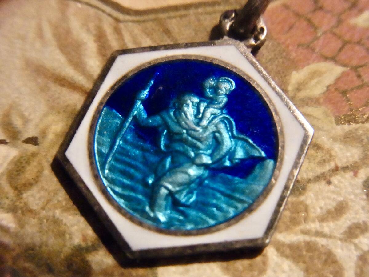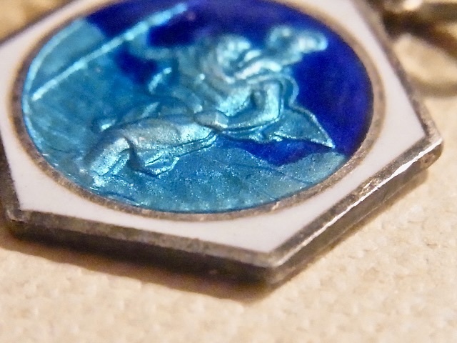 フランス ヴィンテージ 聖クリストファー エマイユ メダイ アンティーク 幼子イエズス シルバー 交通安全