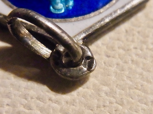 メダイには外側に不透明な白、内側に青のエマイユが施されています。