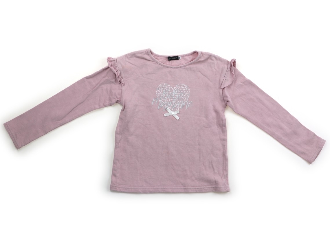 裏パイルスエット生地です。前中心に薄く3cmほどの黄ばみがあり、袖口に黒ずみがあります。袖ぐりの共生地フリルに若干ヨレがあります。普段用にいかがでしょうか。
