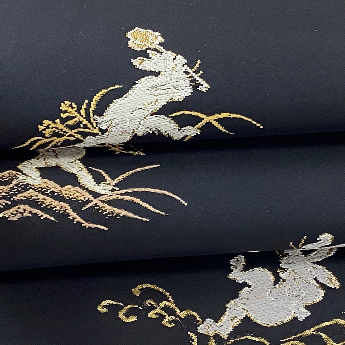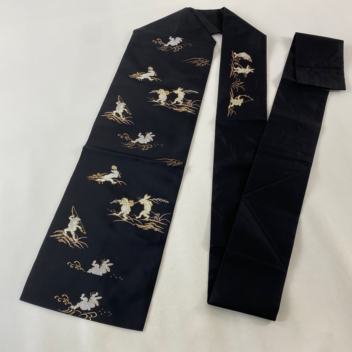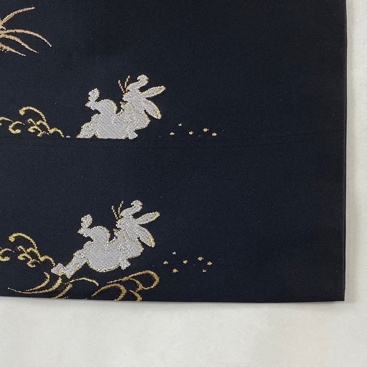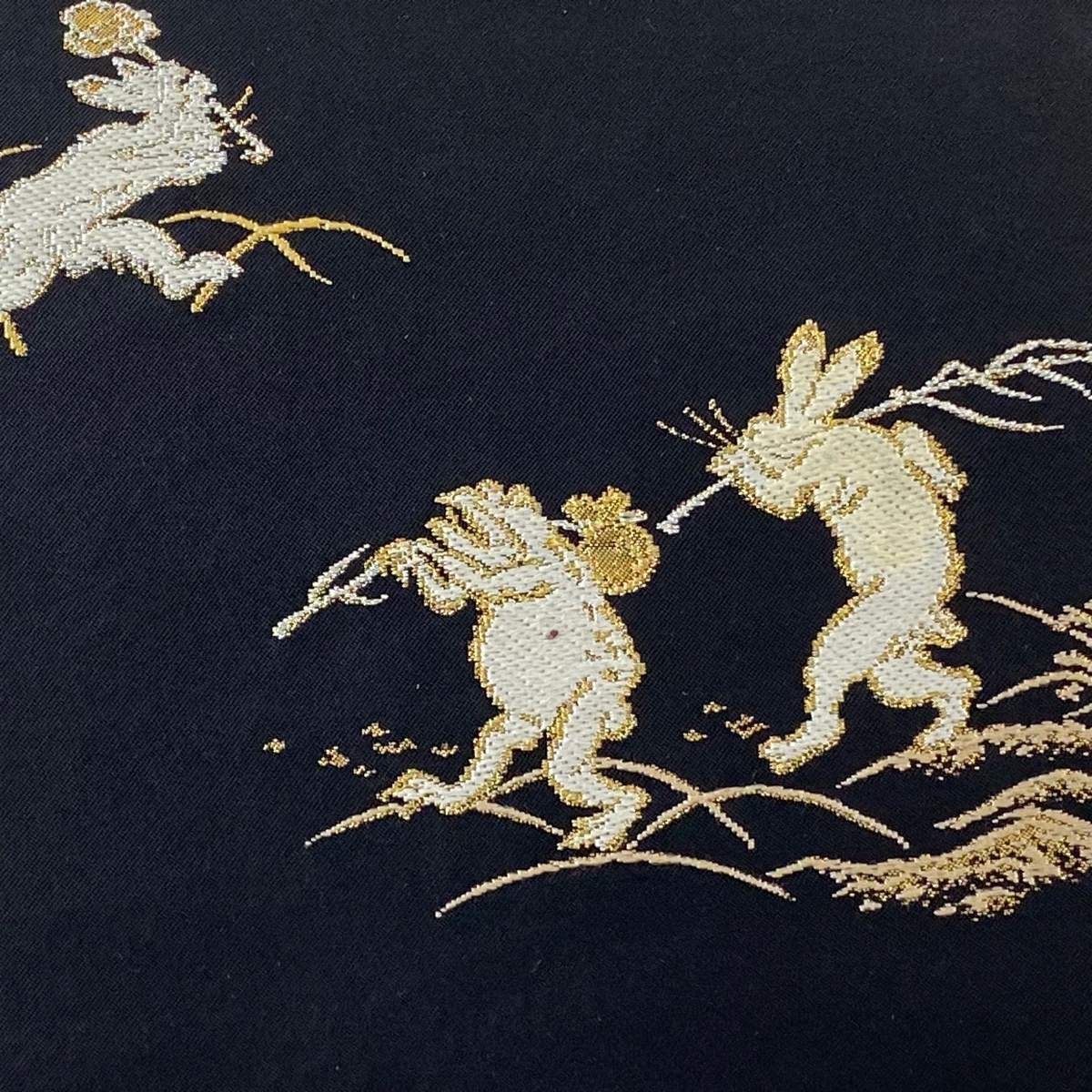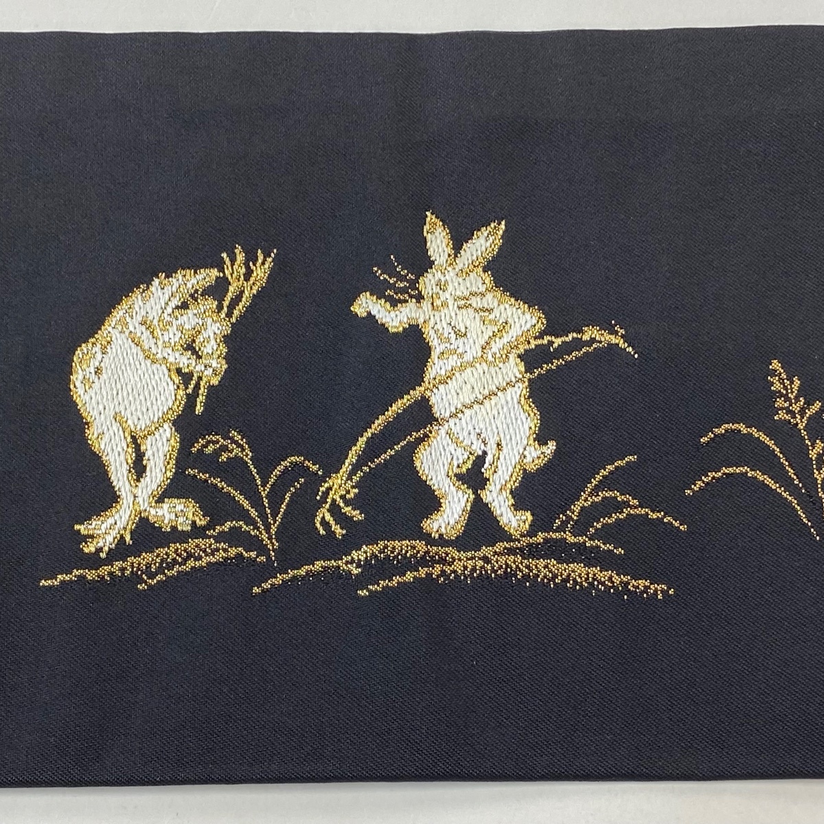 | 名古屋帯 逸品 鳥獣戯画 箔 黒 正絹 【中古】 |