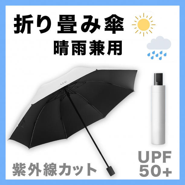 折りたたみ傘 晴雨兼用 UVカット 日傘 完全遮光 雨傘 紫外線 オフホワイト