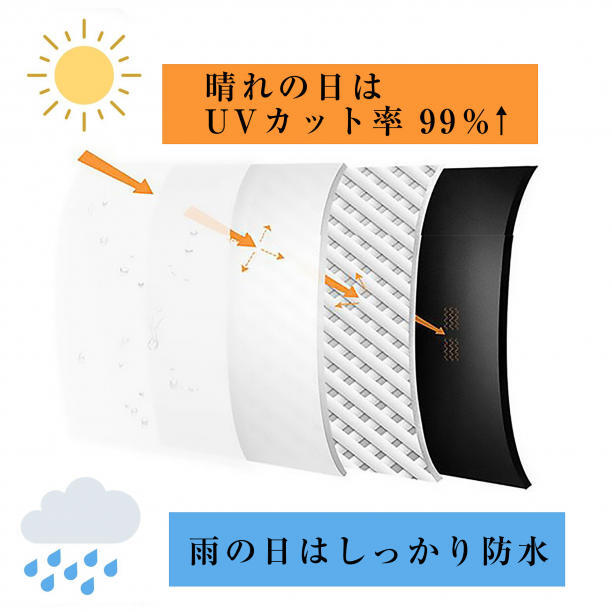 *太陽光をしっかり遮るため生地が厚めに作られております。そのため、最初は畳んだ際の折り目がついており、開いた時に逆さまに開くことがあります。