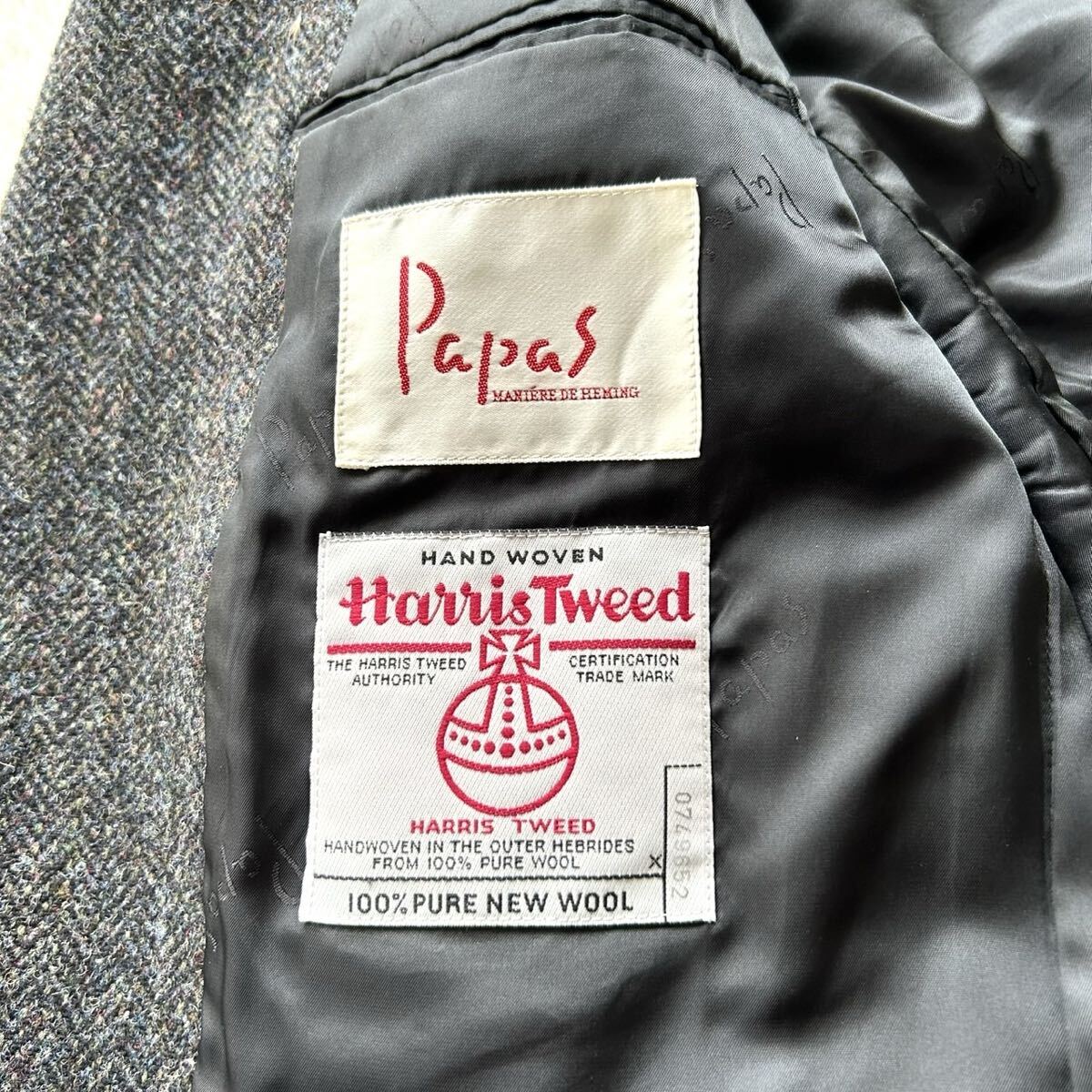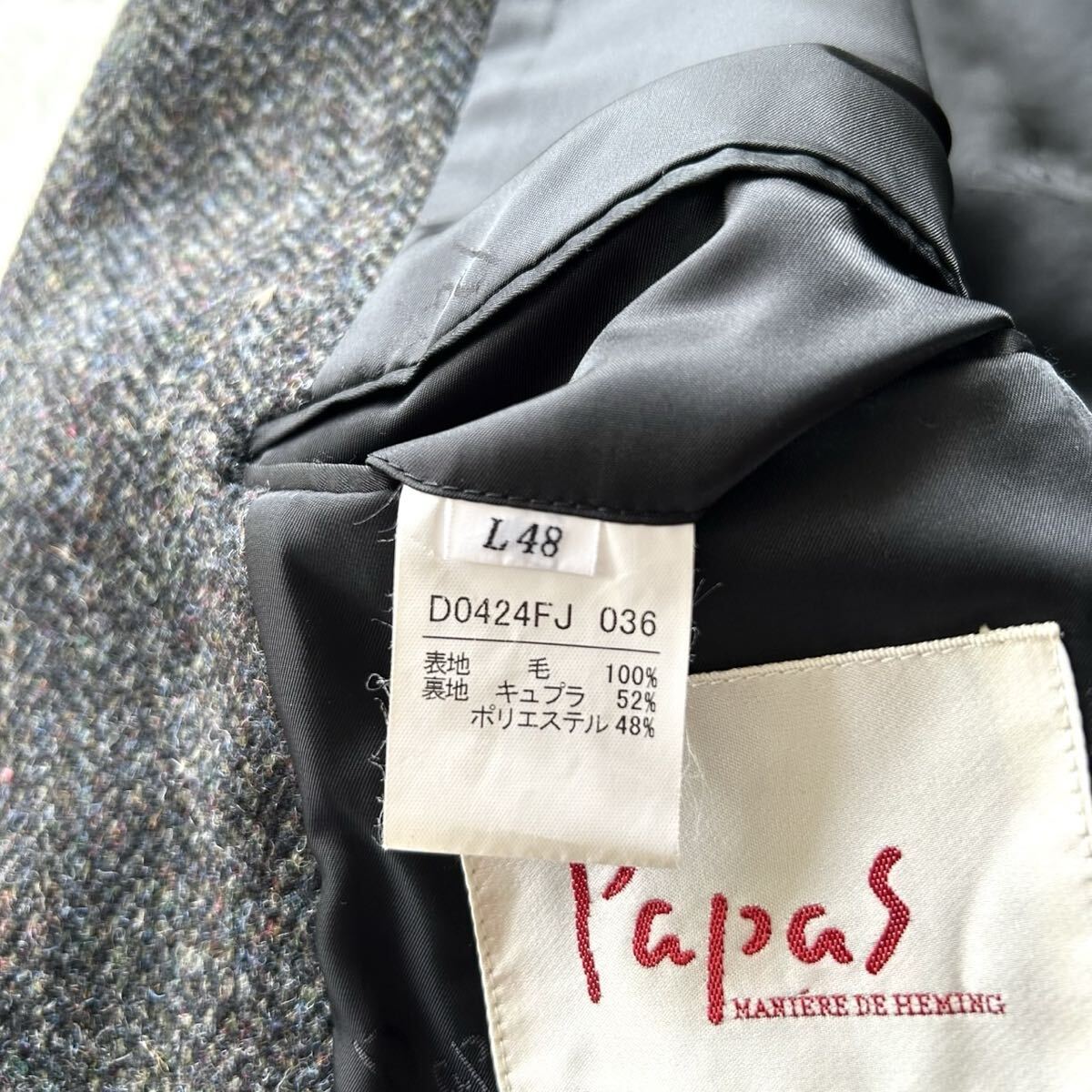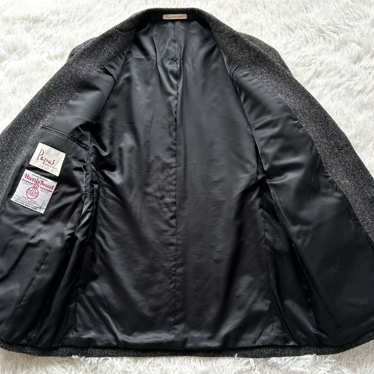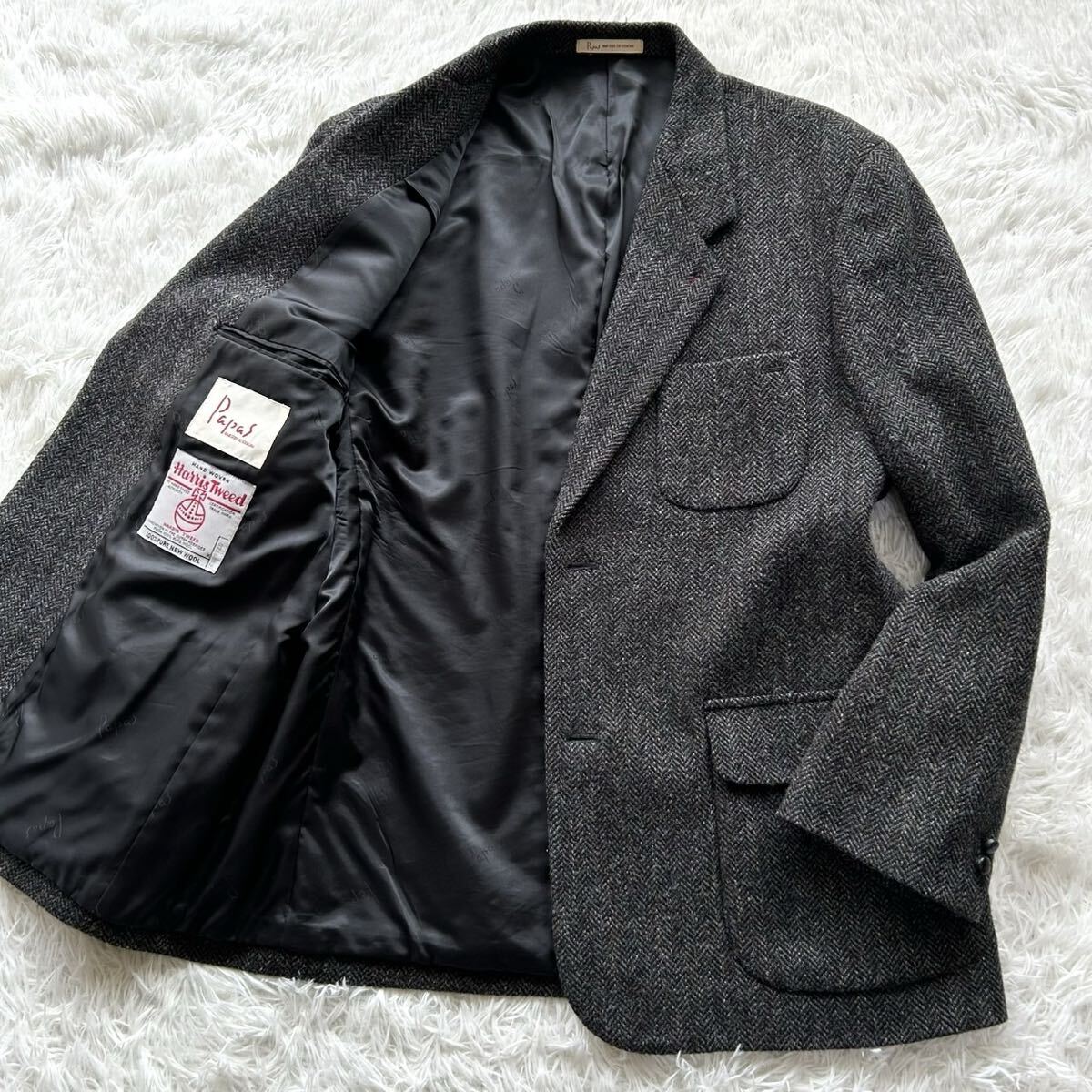 未使用に近い●希少L●Papas パパス テーラードジャケット HARRIS TWEED ハリスツイード メランジ ヘリンボーン柄 くるみボタン 48