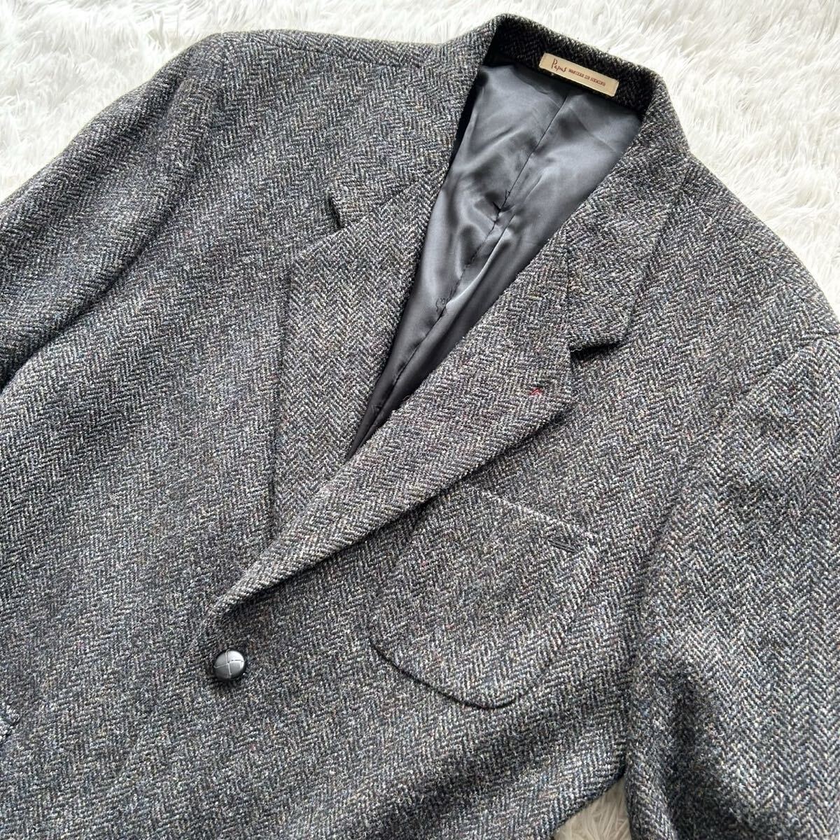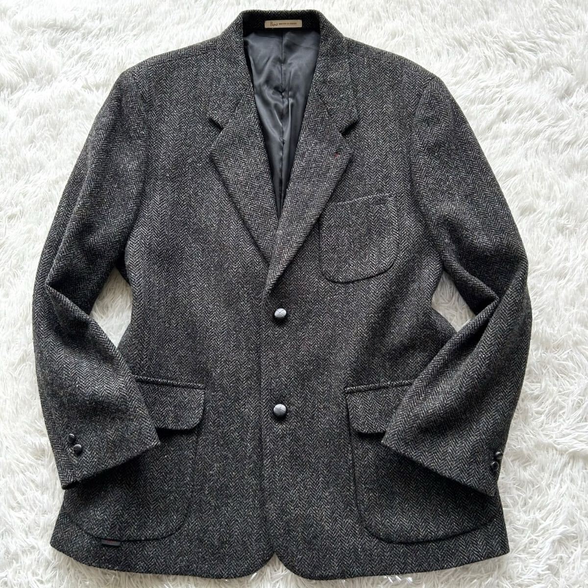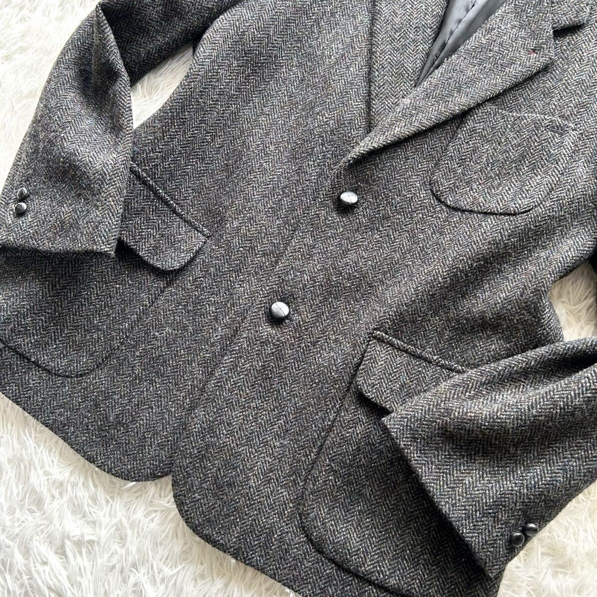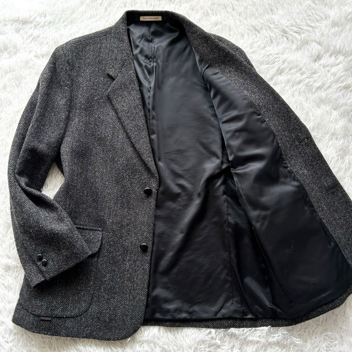 未使用に近い●希少L●Papas パパス テーラードジャケット HARRIS TWEED ハリスツイード メランジ ヘリンボーン柄 くるみボタン 48