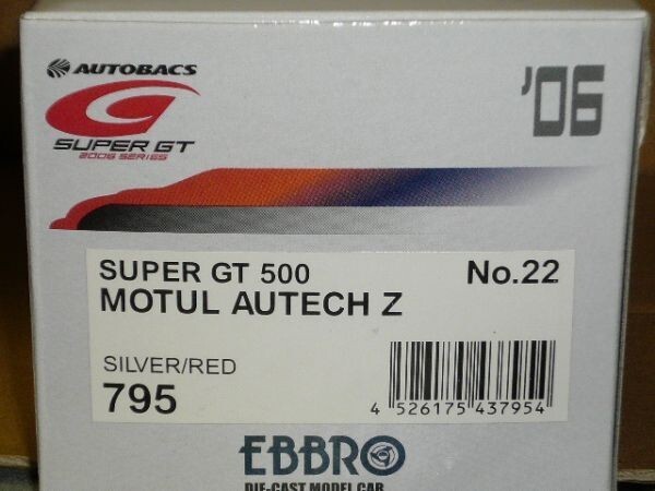 ☆1/43 EBBRO SUPER GT500 MOTUL AUTECH Z No.22 銀/赤です。箱に少し傷みがありますのでご了承の上入札ください。商品の状況は写真でご判断の上、ノークレーム・ノーリターンでお願いします。保証はできませんが、定形外郵便での発送も可能です。