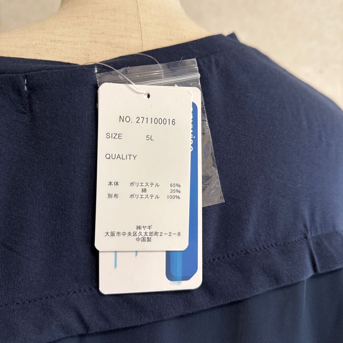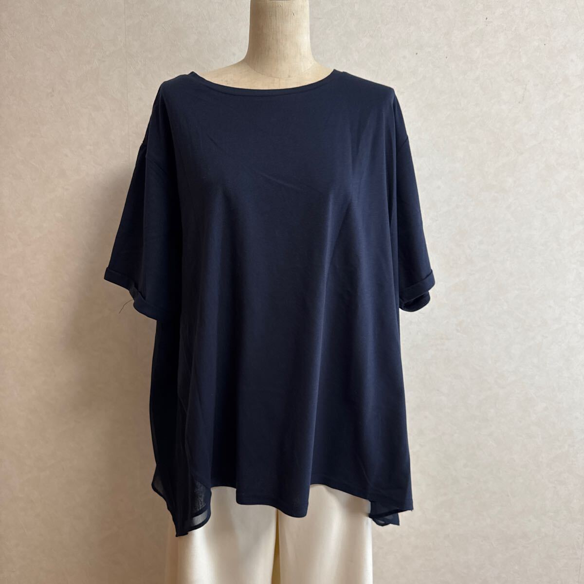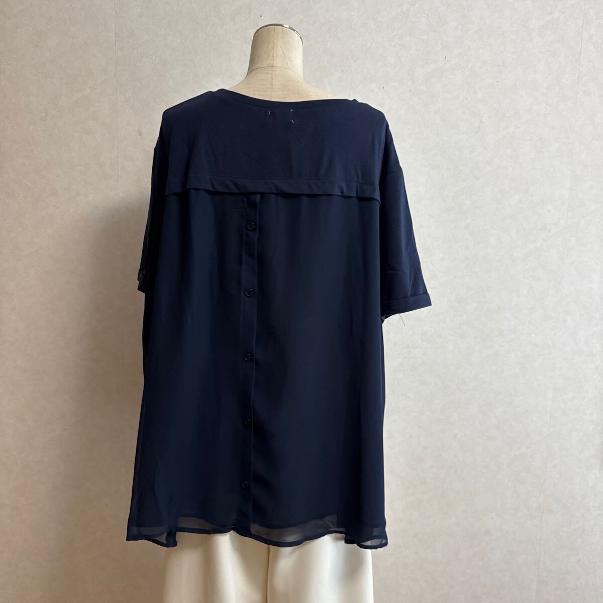 KN2813*5L 大きいサイズ 後ろ、シフォン、切り替えボタンデザイン、プルオーバー、ネイビー