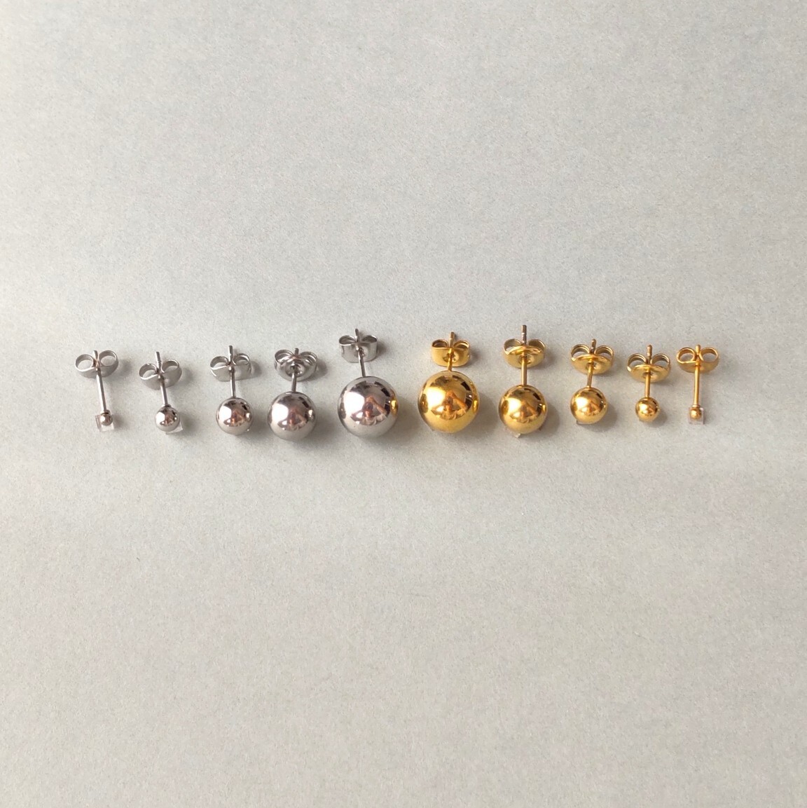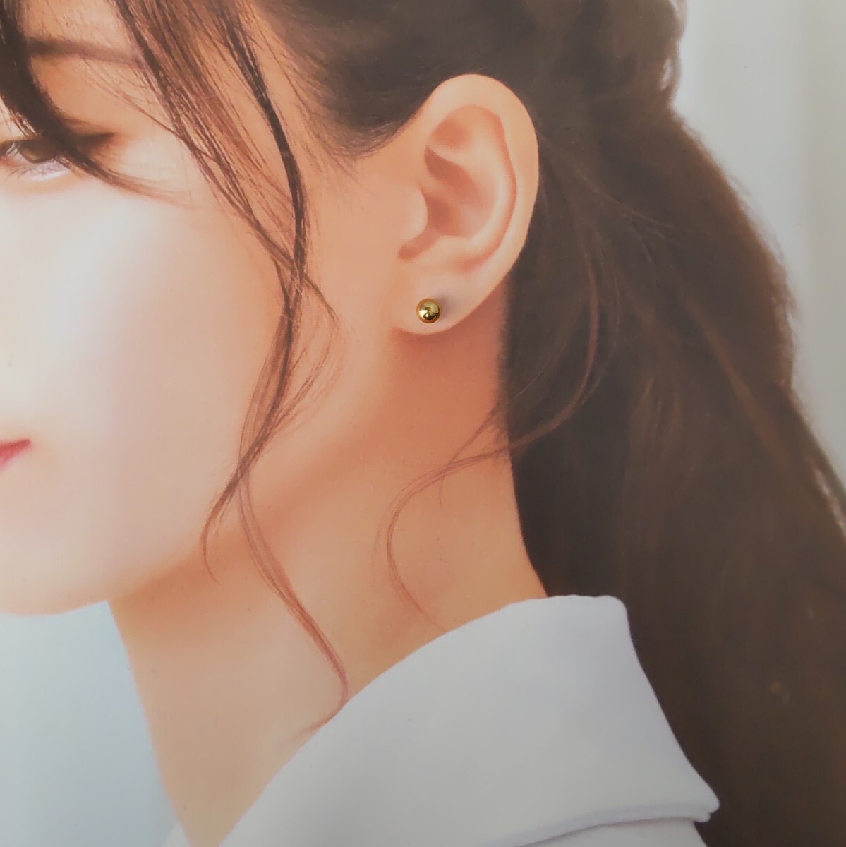 小さめボールはお手持ちのピアスとの重ね付けに、大きめボールはそれ一つでも存在感があります。
