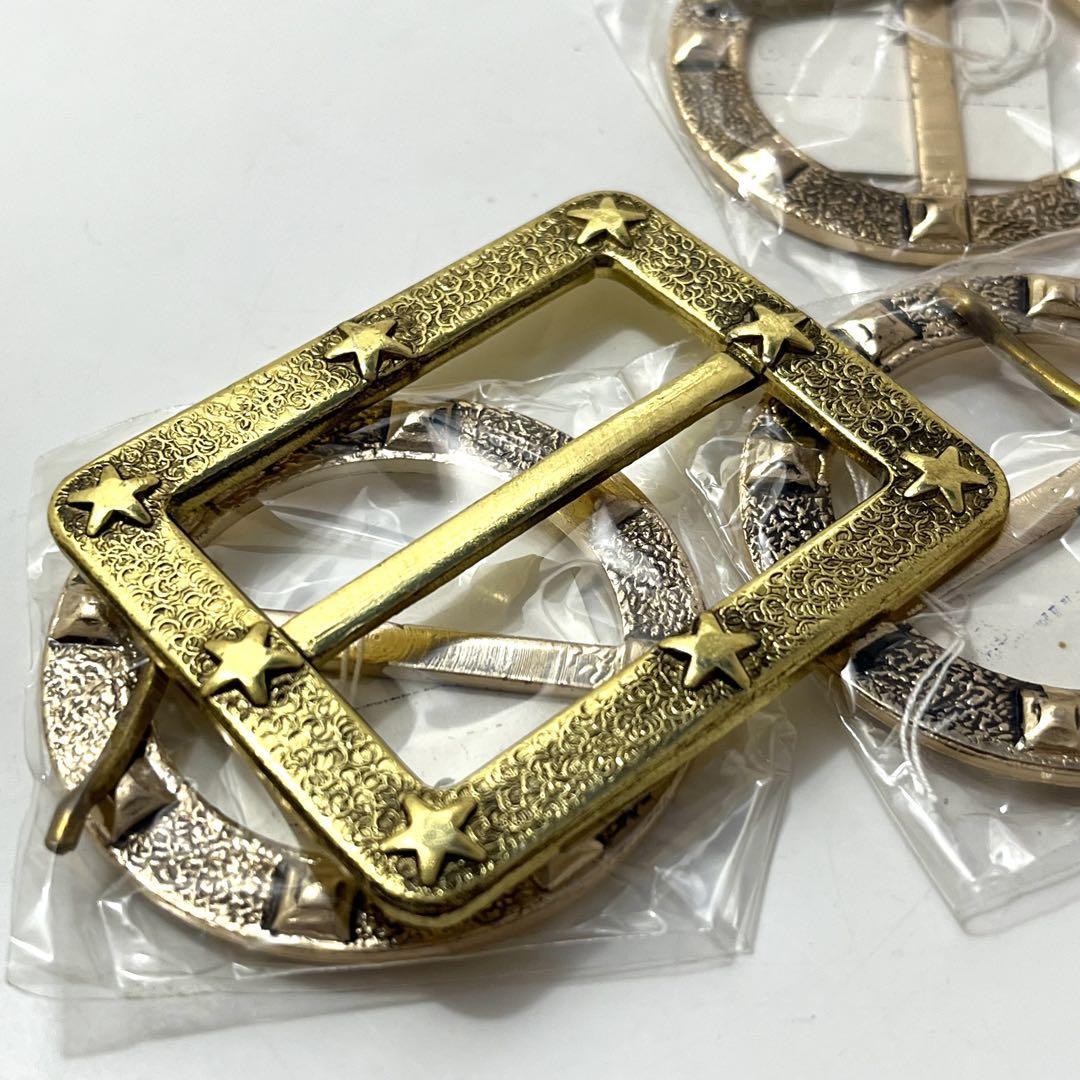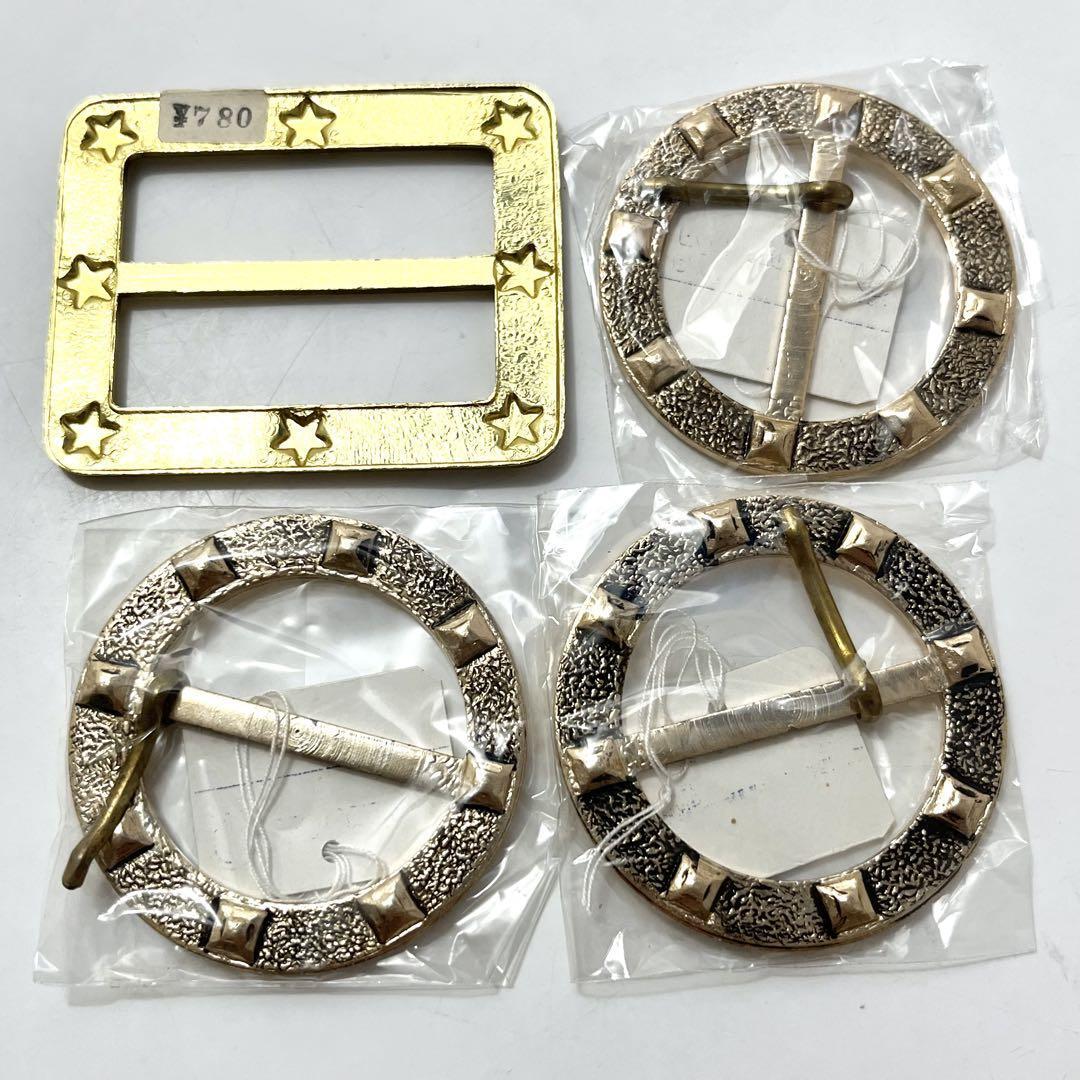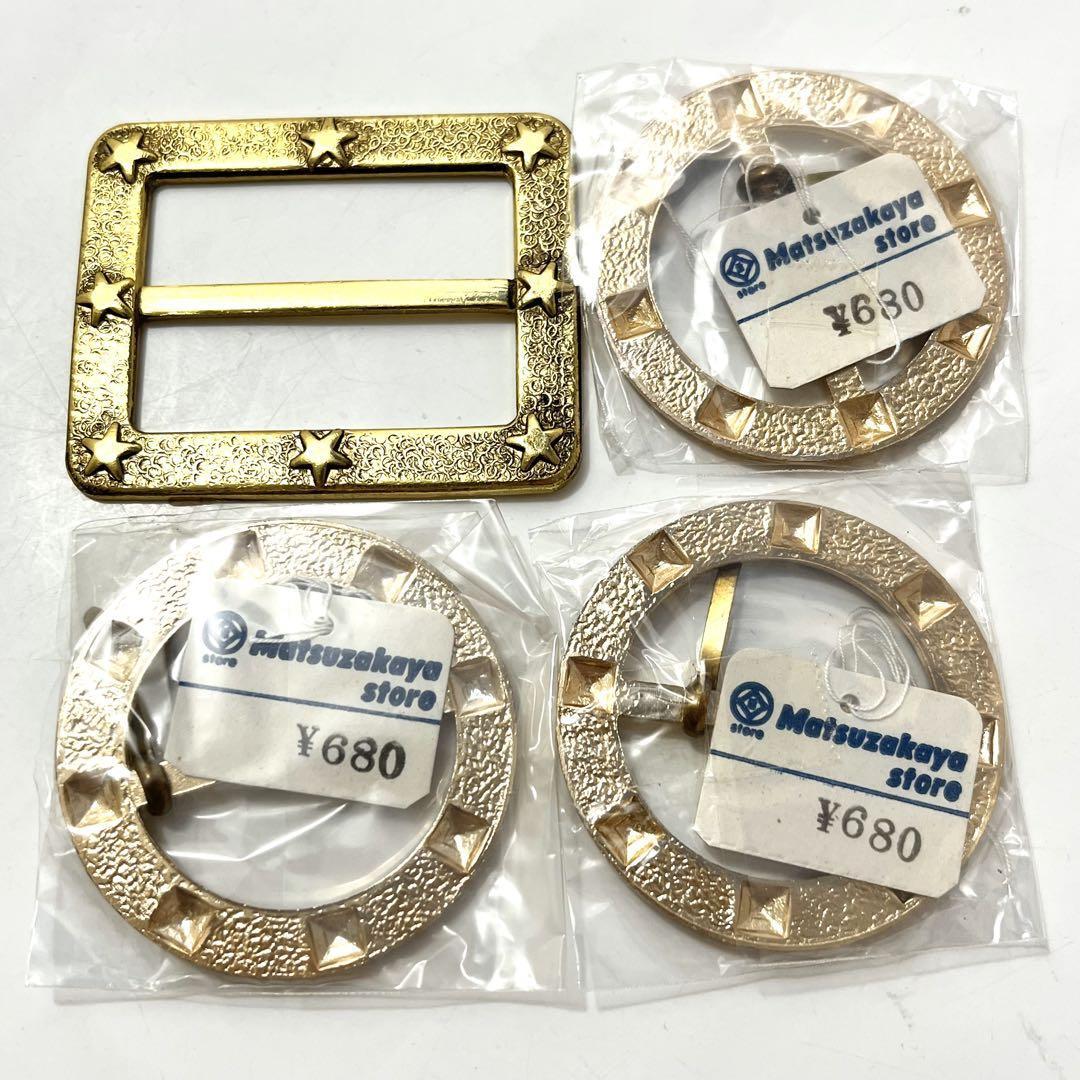 ば13【希少まとめ売り】アンティーク 高級バックル 4個セット 松坂屋ストアタグ付き 金属パーツ 星 丸型◇バッグ修理・ベルトリメイク・衣装製作・手芸資材 レトロ