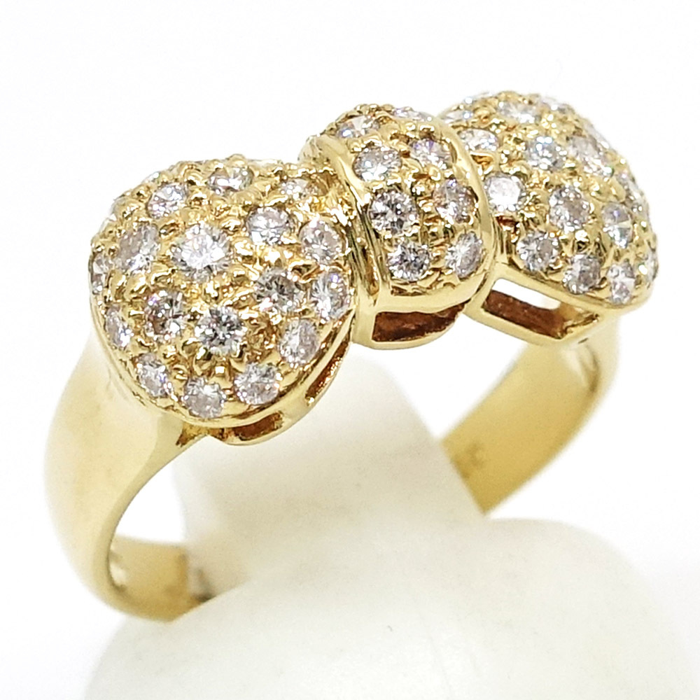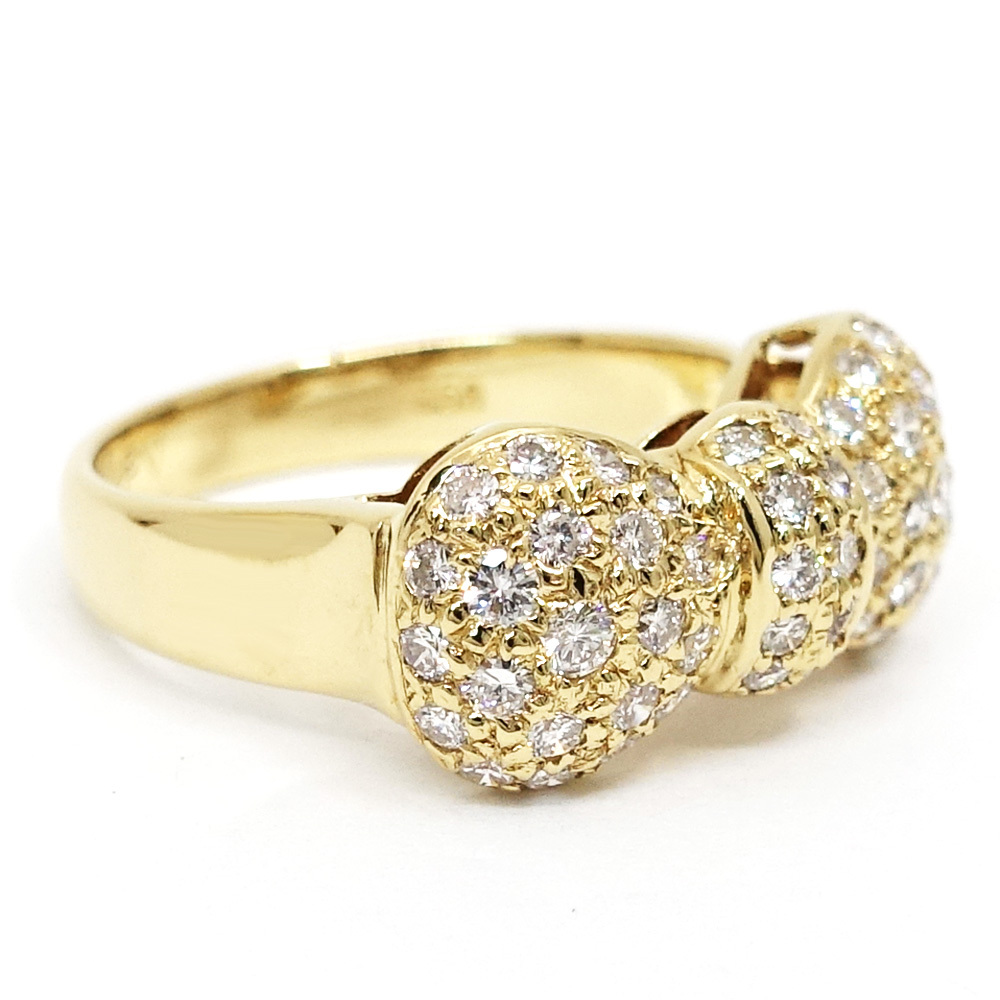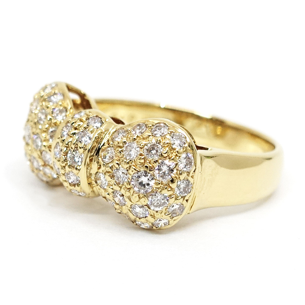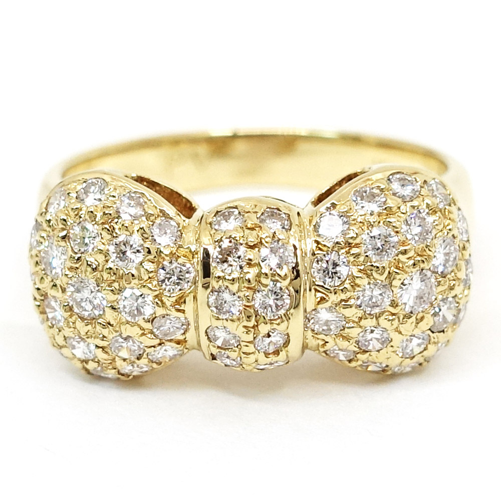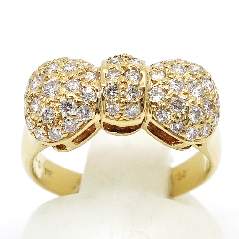 【栄】ポンテヴェキオ K18YG パヴェ ダイヤモンド 0.70ct リボン リング 指輪 750YG ジュエリー レディース【仕上済】