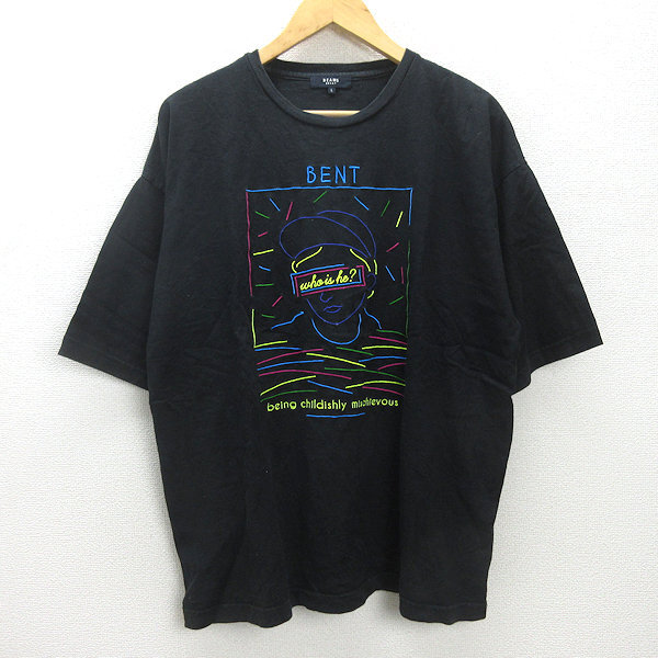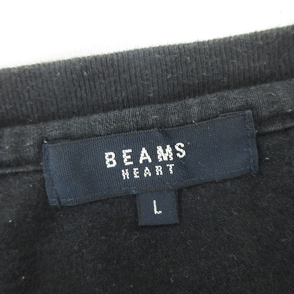 D■ビームスハート/BEAMS HEART ネオン刺繍 Tシャツ【L】黒/MENS/121【中古】■