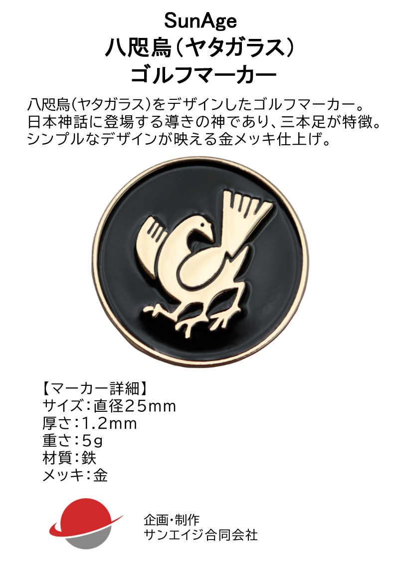 八咫烏(ヤタガラス)をデザインしたゴルフマーカー(ボールマーカー)です。